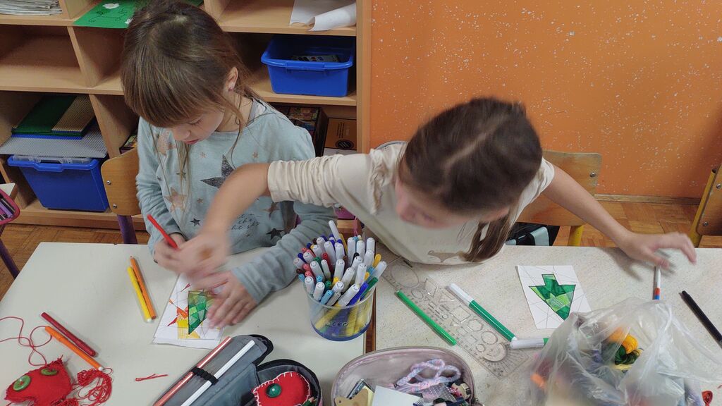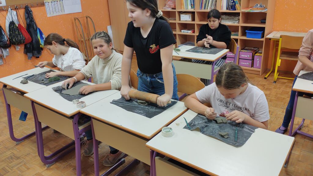 Novembra smo postali arhitekti in s pomočjo slamic gradili različne zgradbe. Veliko časa smo namenili izdelavi izdelkov za šolski bazar. Letos smo se lotili izdelave okroglih glinenih obeskov, ki smo jih okrasili z reliefnim božičnim motivom. Tudi smrečic, angelčkov in svečk ni manjkalo.