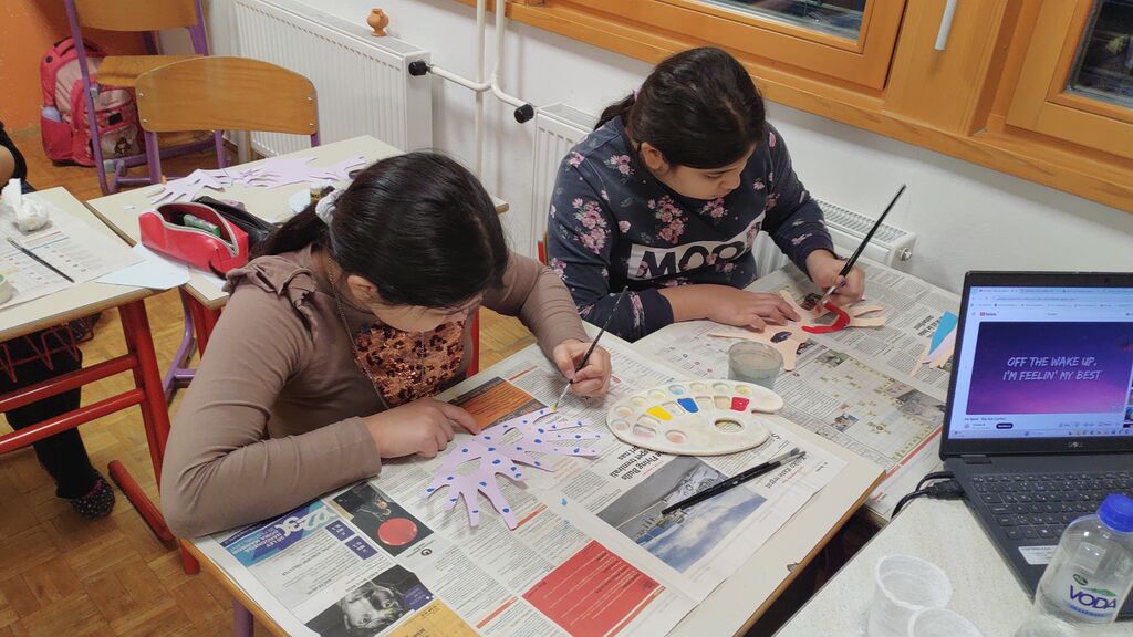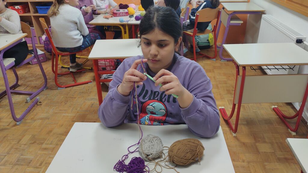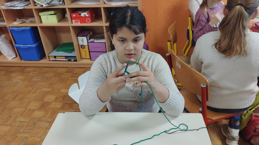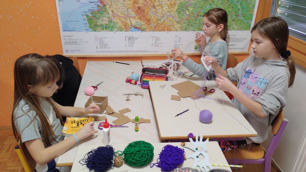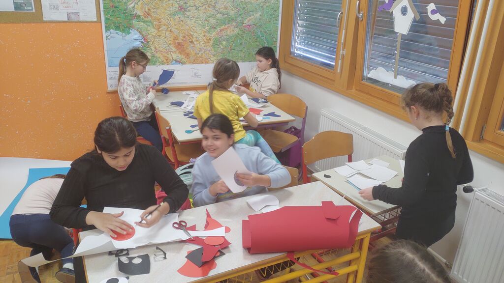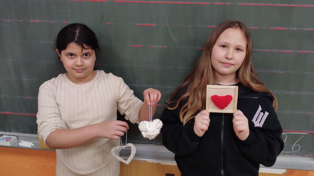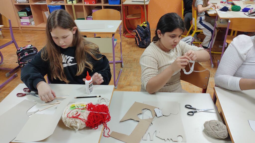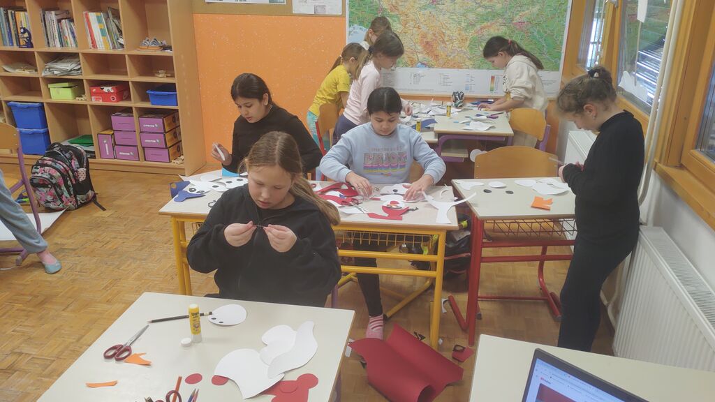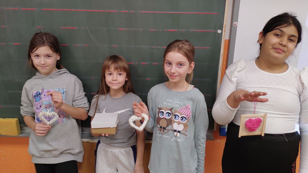 Pripravljali smo se na pust. Izdelali smo pustno masko, kjer smo za njeno obliko uporabili kar naše roke. Tudi na valentinovo nismo pozabili. Izdelali smo srčke. Najprej smo na karton narisali srček in ga izrezali. Nato smo ga ovili z volno. Iz štirih lesenih palčk smo si izdelali okvir, nanj prilepili list papirja in v sredino naš volneni srček. V zadnjem tednu pred počitnicami pa smo se posvetili kvačkanju.