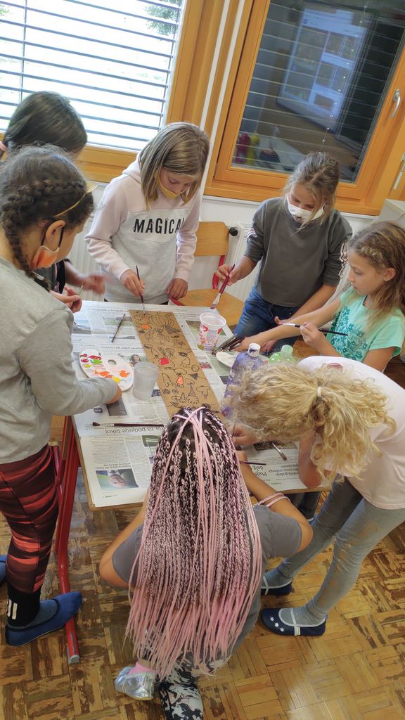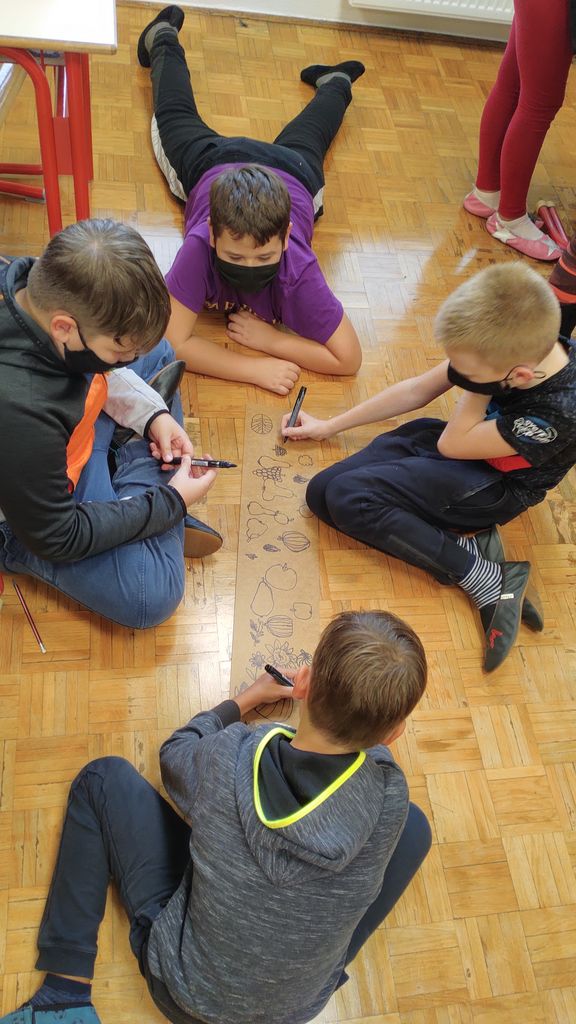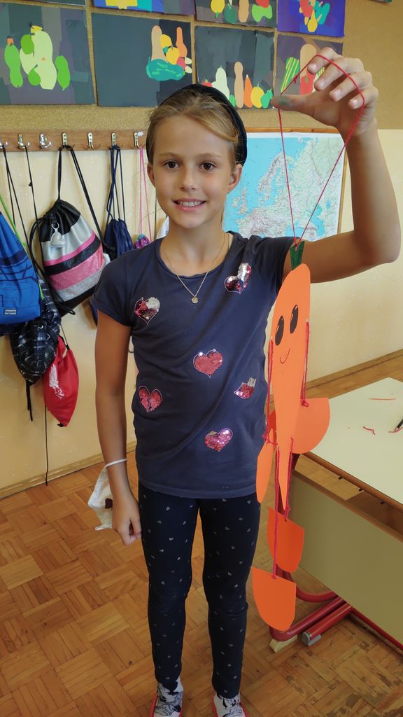 Ponovno se je začela šola in učenci smo zapolnili tihe in prazne razrede. Tudi pri ustvarjalnicah se je veliko dogajalo. Najprej smo ustvarjali na temo počitniška doživetja in slikali z vodenimi barvami. Nato smo v roke vzeli krede in risali naše sence. Postavili smo se v najrazličnejše položaje in sošolci so obrisali naše sence. Ker se je v zadnjem tednu začela jesen, smo pridno zavihali rokave in ustvarjali na to temo. Na leseno desko smo s črnim flomastrom narisali jesenske pridelke in jih pobarvali z jesenskimi barvami. Uporabili smo tempera barve. Da se bodo naši pridelki lepo videli, smo ozadje odeli v hladne barve.