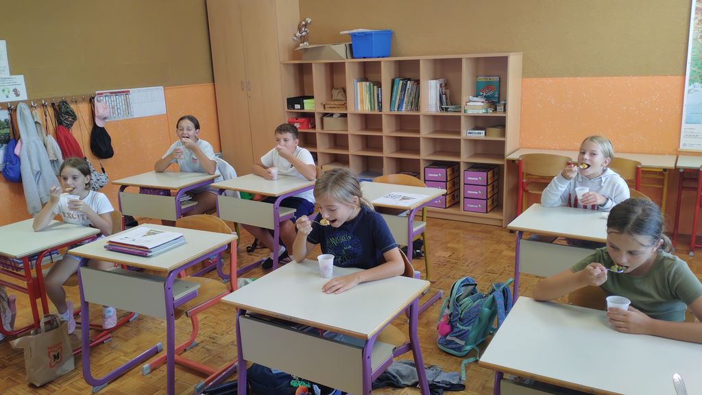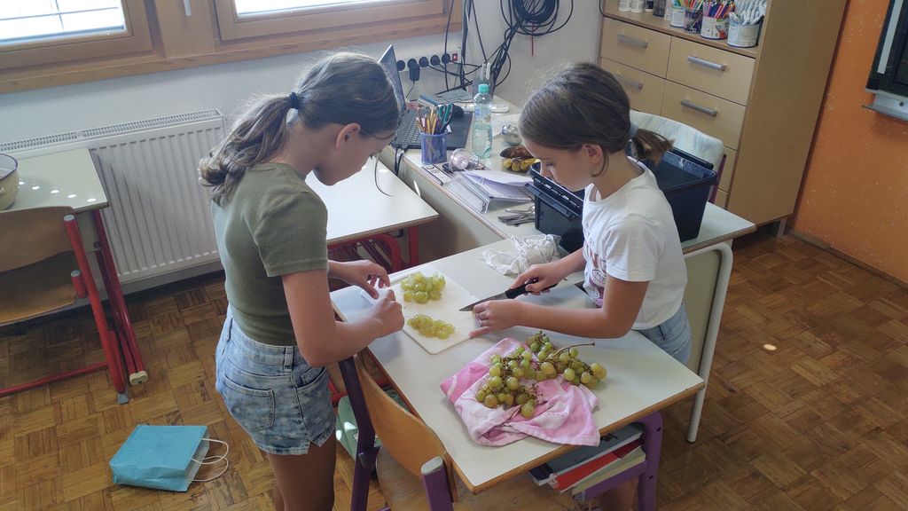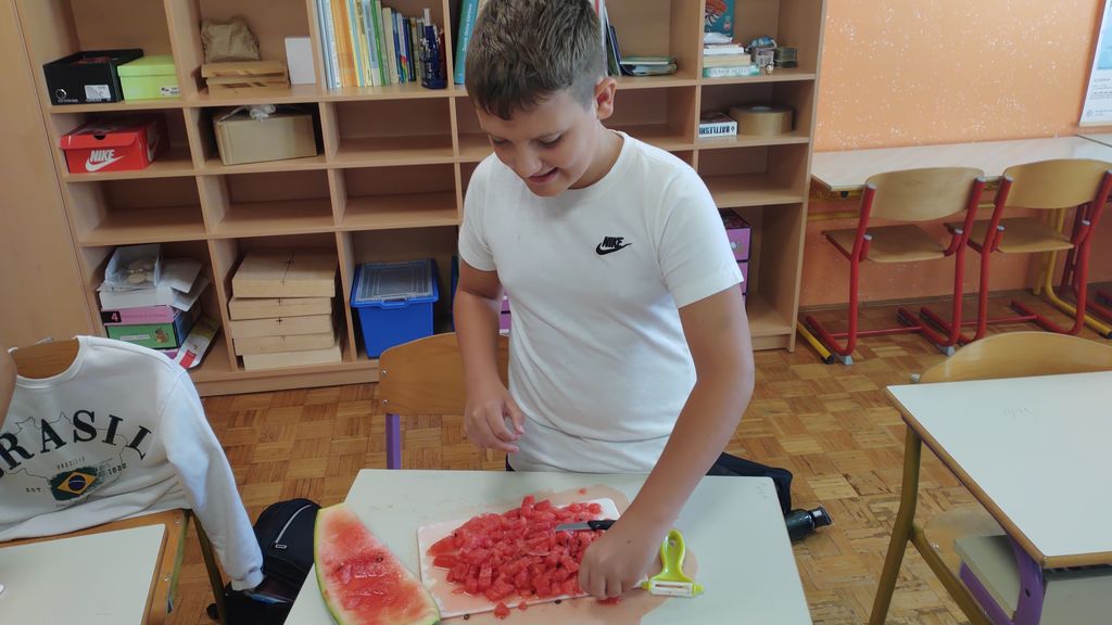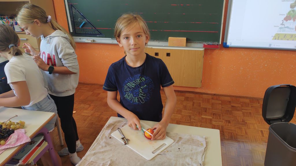 Septembra smo si pripravili zdravo malico – sadno solato. Na krosu smo se borili za najhitrejši rezultat.