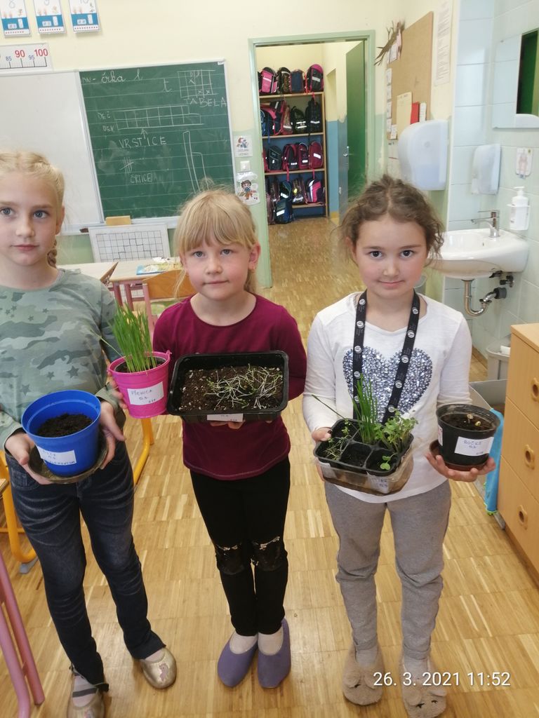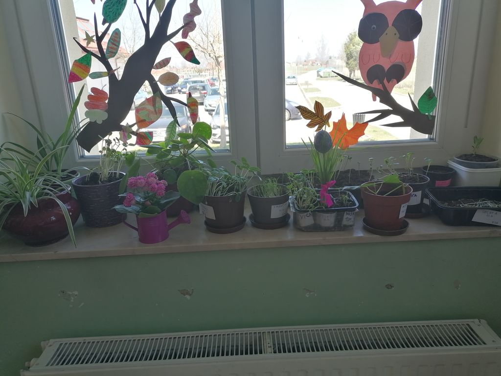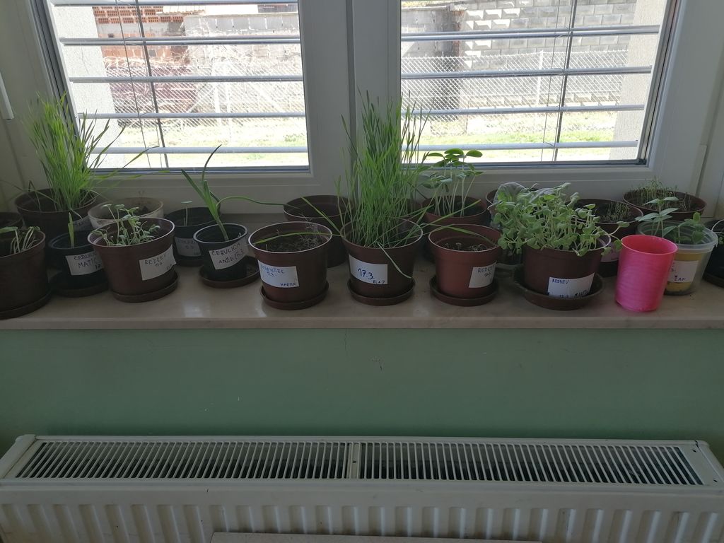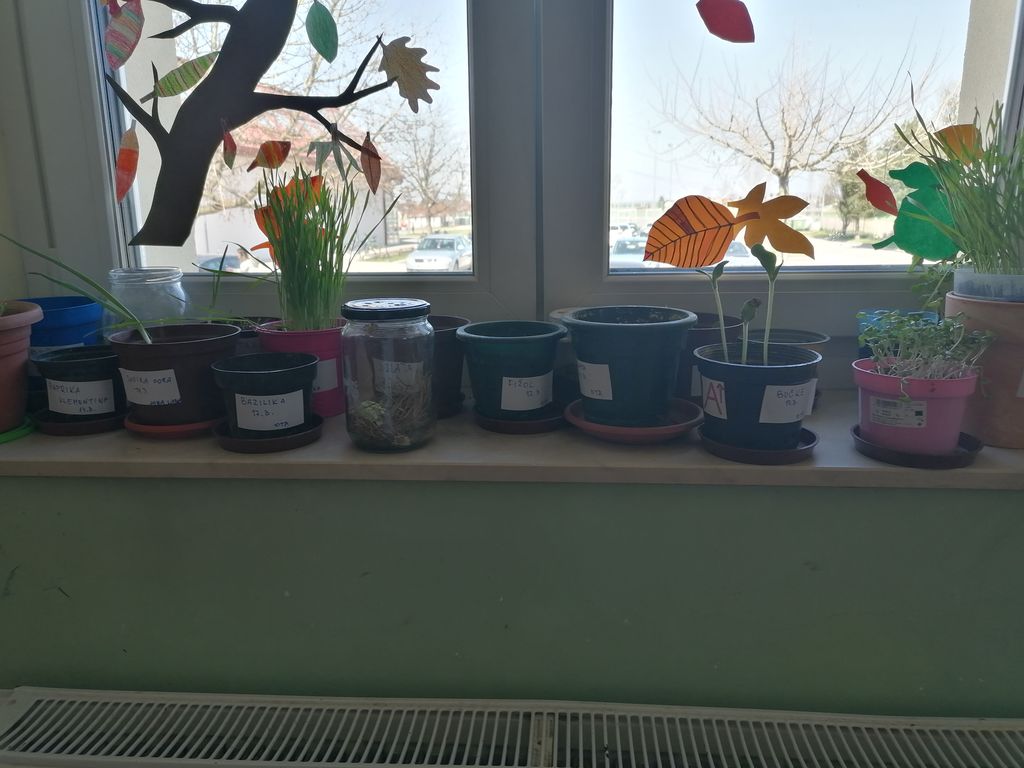 Vzklile so nam kumare, korenček, sončnice, redkev, solata, bučke, fižol, bob, bazilika, timijan, čebula in pšenica. Posadili smo sadike zimske in letne solate in pora ter gomolje topinamburja in krompirja. Vsak dan smo si ogledovali rastline in jih po potrebi zalivali. Ko so nam zelo zrastle, smo jih odnesli domov. Presadili smo jih na vrt ali v rastlinjak. Upamo, da bomo čez kake tri mesece imeli tudi kaj našega pridelka za v usta. Za to smo se tudi trudili.