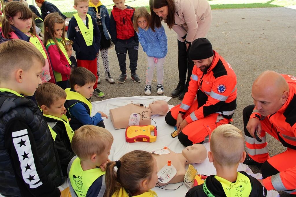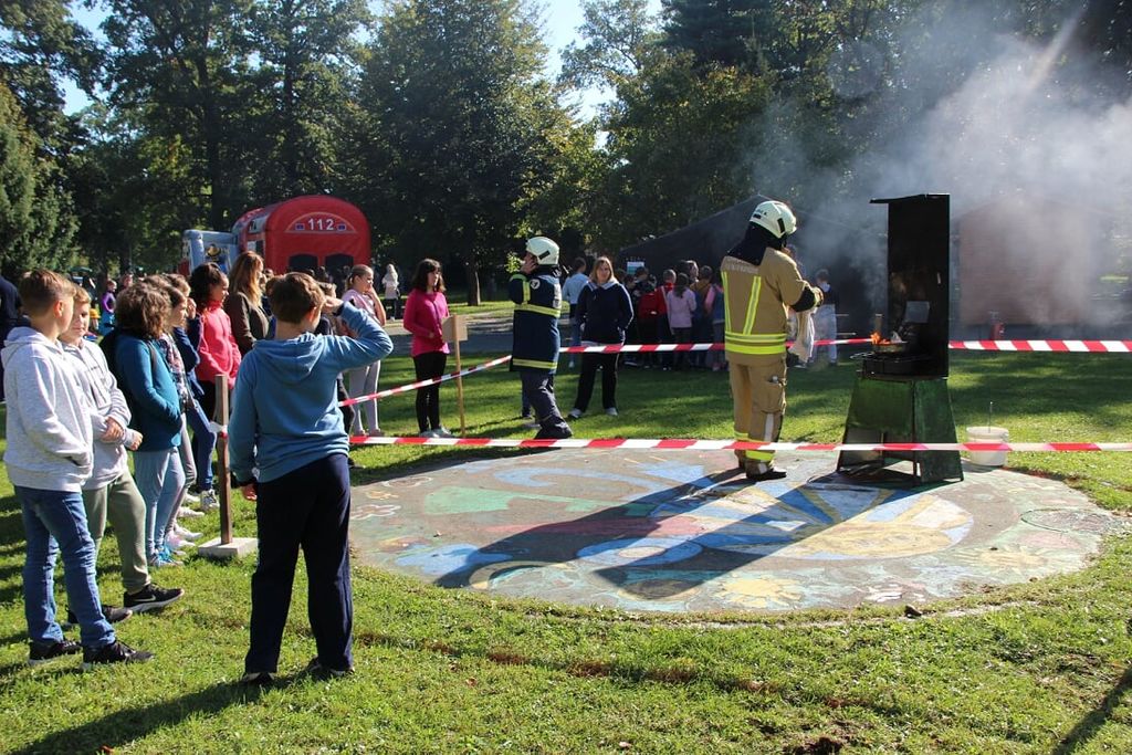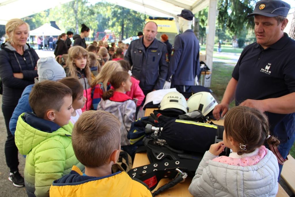 Zjutraj je na šoli potekala vaja evakuacije, po vaji pa smo se preselili v Park mladosti, kjer so učenci na poučnem poligonu z 19 igrami spoznavali delo gasilcev, policistov in reševalcev. Na prvi postaji so morali po načrtih sestaviti gasilni aparat. Na drugi postaji so se seznanili z gibanjem dima po hiški, na tretji pa z gasilskimi uniformami za različne priložnosti. Na 4. in 5. postaji jim je medicinsko osebje pokazalo, kako oskrbeti poškodovanca ter kako oživljati s pomočjo defibrilatorja. Na 6. postaji so skozi pantomimo spoznali delo gasilcev. Na 7. postaji so z zavezanimi očmi poskušali skozi labirint spraviti žogico do cilja. Na 8. postaji so jim policisti opisali in prikazali svoje delo, spoznali pa so tudi policijskega psa in konje. Člani PGD Lovrenc so na 9. postaji s pomočjo simulatorja prikazali, kako se pogasi požar. Na 10. postaji so člani PGD Hajdina seznanili otroke z osnovno opremo za gašenje in prikazali napad iz vozila, na 11. postaji pa so se učenci preizkusili v vaji z vedrovko. Na 12. postaji so morali iz zadimljenega prostora prinesti določene predmete, na 13. postaji pa so bili priča prikazu, kaj se zgodi, če v vroče olje vlijemo vodo. Na 14. postaji so morali skozi cev spraviti vodo do vedra, na naslednji postaji pa so poskušali iz cevi, katera je imela luknje, žogico z vodo spraviti na površje. Učencem je bila še posebej zanimiva 16. postaja, ko so si lahko dali duška v napihljivem gradu. Na 17. postaji so tekmovali z ročnikom, na 18. postaji pa so z obroči poskušali zadeti tarče. Na zadnji postaji so z zavezanimi očmi skušali speti cevi.