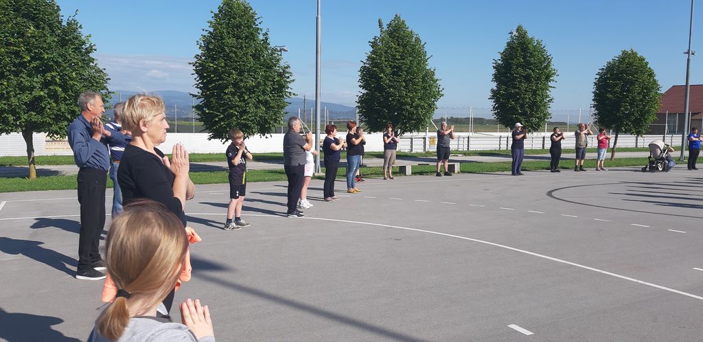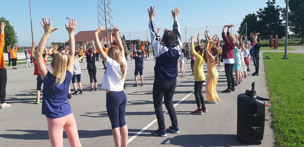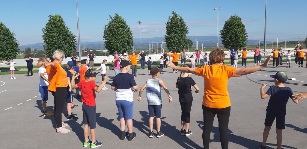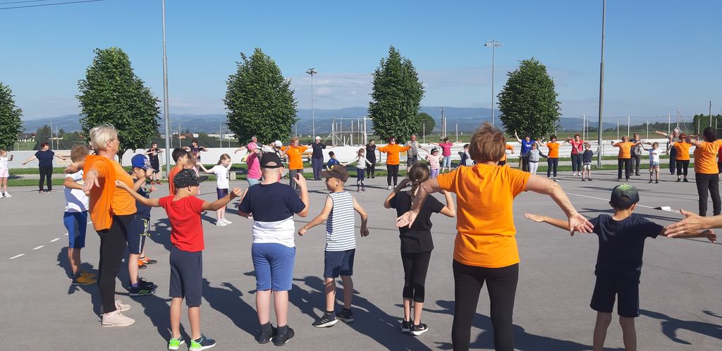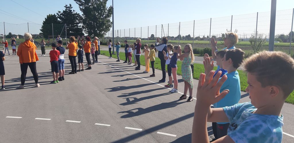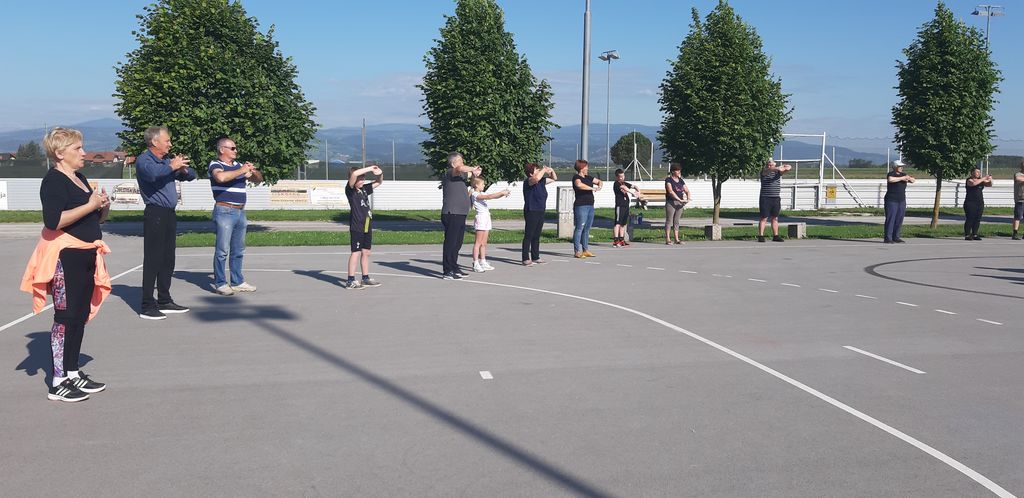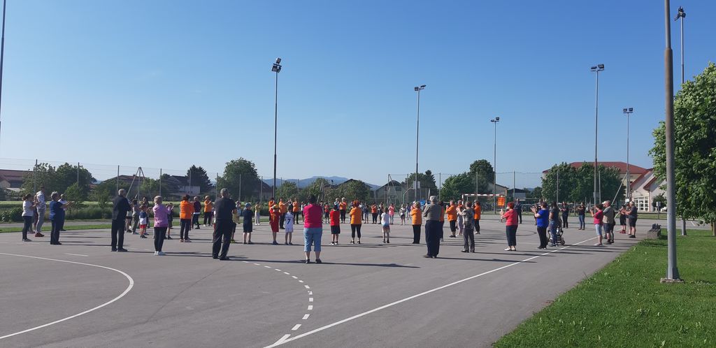 V projektu sodelujejo poleg otrok tudi starši in stari starši. Tudi letos je bilo tako. V sredo, 18. 5. 2022, so se nam na šolskem igrišču pridružili v velikem številu. V 30-minutni vadbi pod vodstvom učiteljice Marije Jurtela smo se vsi dobro razgibali od glave do pet. Opazili smo, da vsakodnevna vadba zares pripomore h gibčnosti, saj so oranžne telovadke vaje izvajale lažje kot mi. Največ težav smo imeli pri vajah za ravnotežje.