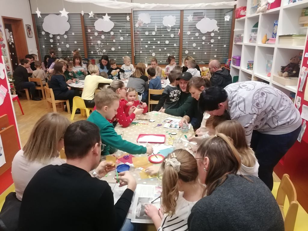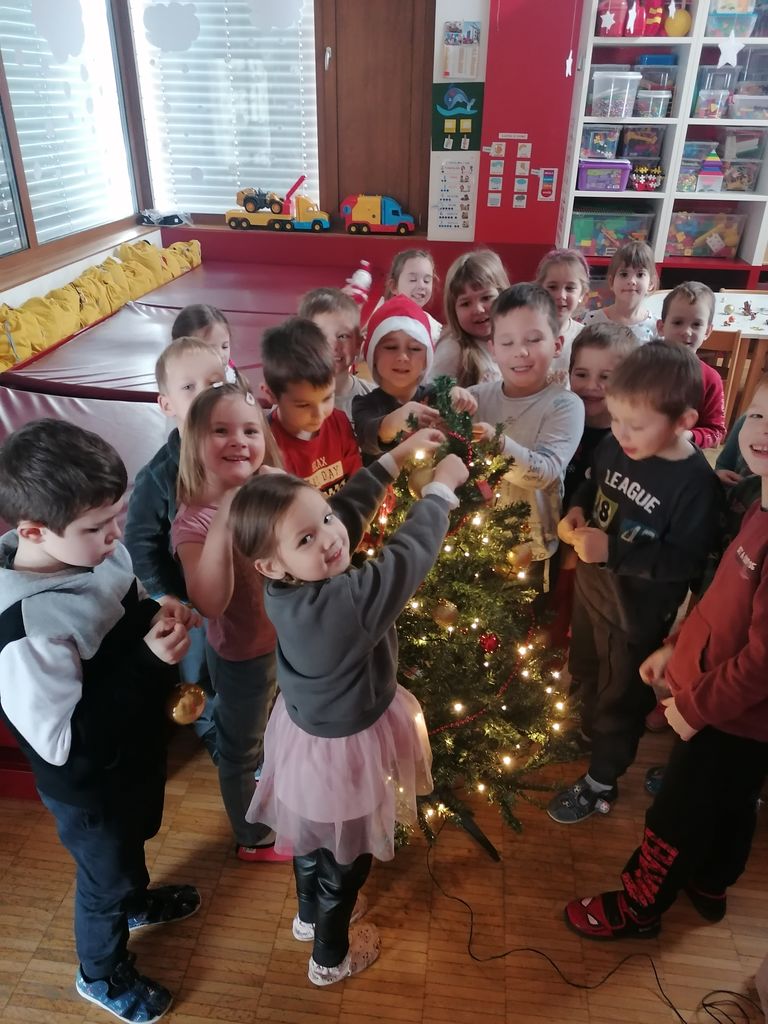 V skupini Delfini smo december začeli s pismi škratov, ki so nas usmerjali k dejavnostim. Te dejavnosti pa smo veselo izpolnjevali. Naučili smo se novih pesmi, spoznali pravljice s praznično vsebino, pekli piškote, imeli čajanko, nadaljevali s srečanjem s starši, pohodom in prižigom lučk, obiskom tete Zime, obiskom Božička in ogledom gledališke predstave, obiskali smo drsališče ter si ogledali lepo okrašen park Pod tisočerimi zvezdami in še bi lahko naštevali.
