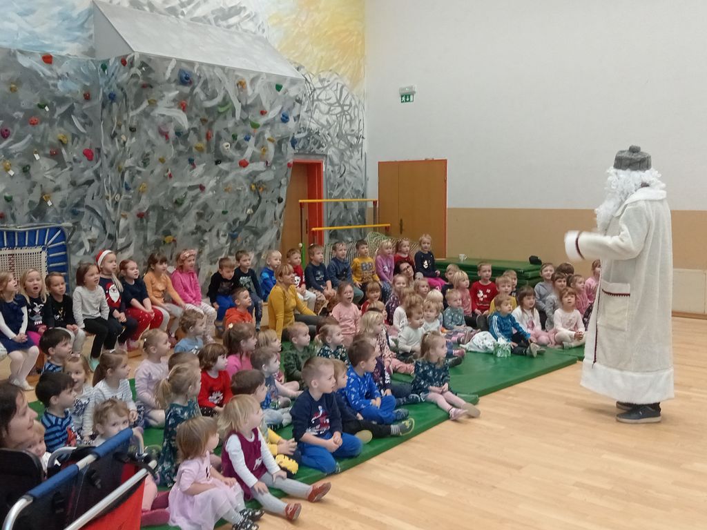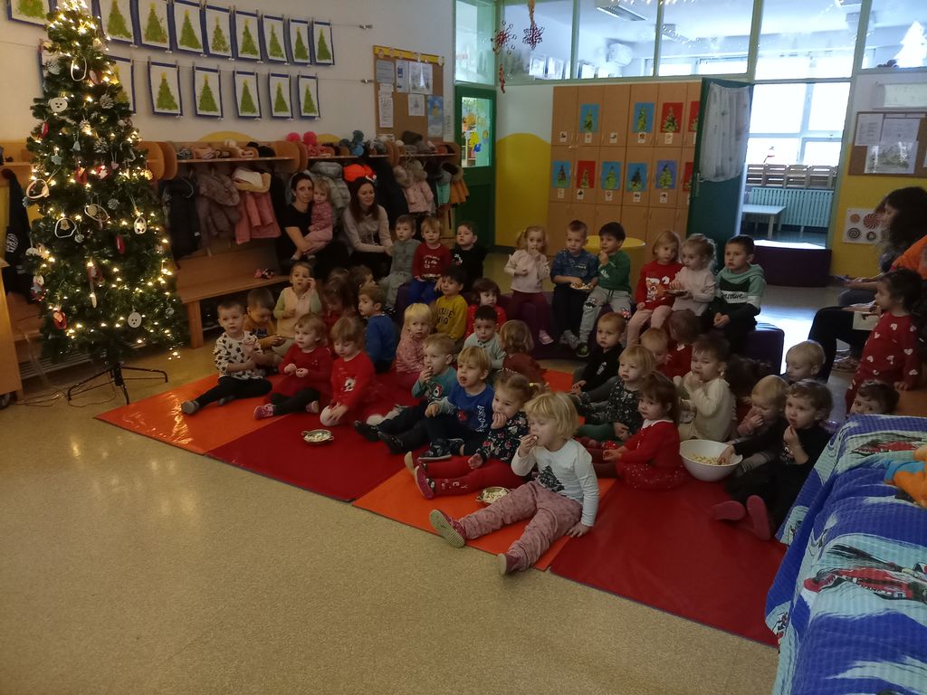 V predzadnjem tednu tega leta so otroci izdelovali praznične pogrinjke, si ogledali gledališko predstavo gledališča Kukuc z naslovom Jelkin čudež ter predstavo vzgojiteljic z naslovom Didl, didl, daja. Po predstavi so skupaj priklicali dedka Mraza, ki jih je obiskal in jim prinesel darila, katera so z velikim zanimanjem odvili in se veselo zaigrali z njimi.