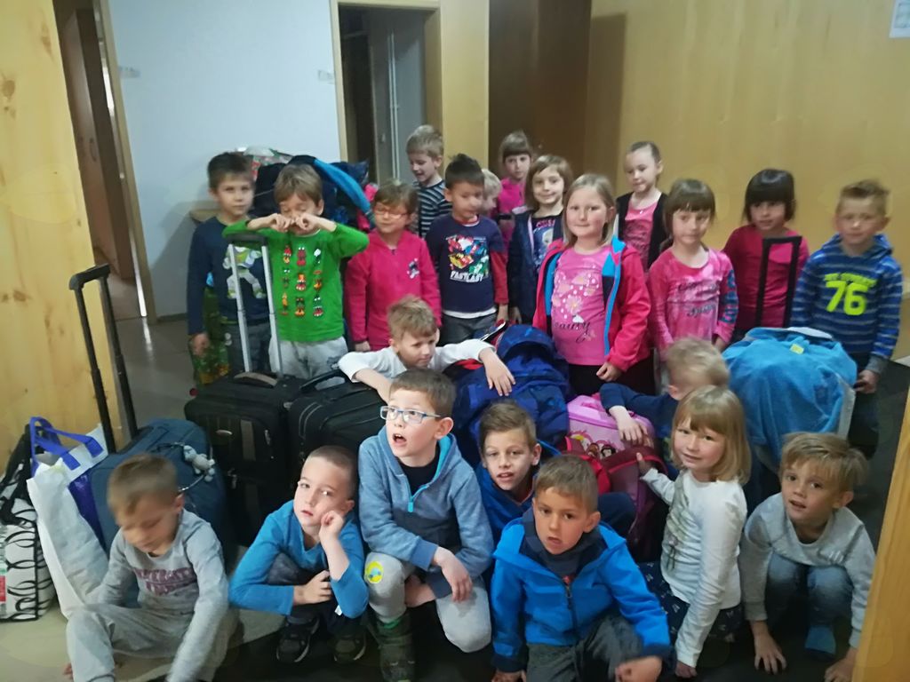 Avtobus nas je po vijugasti cesti pripeljal do koče, kjer smo se najprej namestili po sobah, se malo oddahnili, odšli na kosilo in se odpravili raziskovat bližnjo okolico. Že malce utrujeni smo se vrnili in se po malici hoteli odpraviti na krajši sprehod, ko nas je presenetila snežna nevihta. Pa nič za to, igra v sobah je otrokom bila za sprostitev. Zvečer smo si ogledali diapozitive o življenju na Pohorju nekoč, po večerji pa je sledil težko pričakovani pižama "party". Utrujeni smo prvi večer kar "popadali" v svoje postelje.