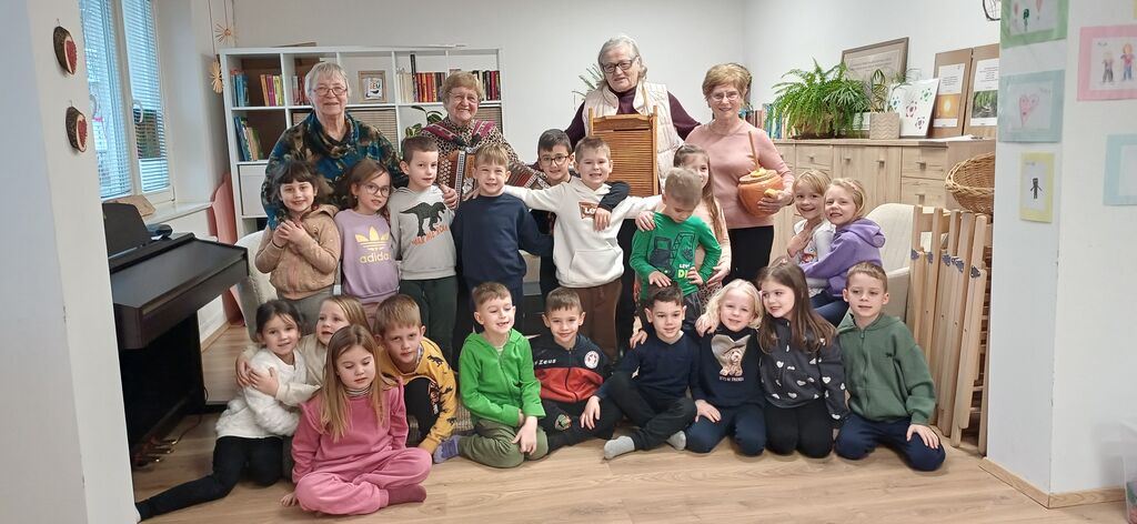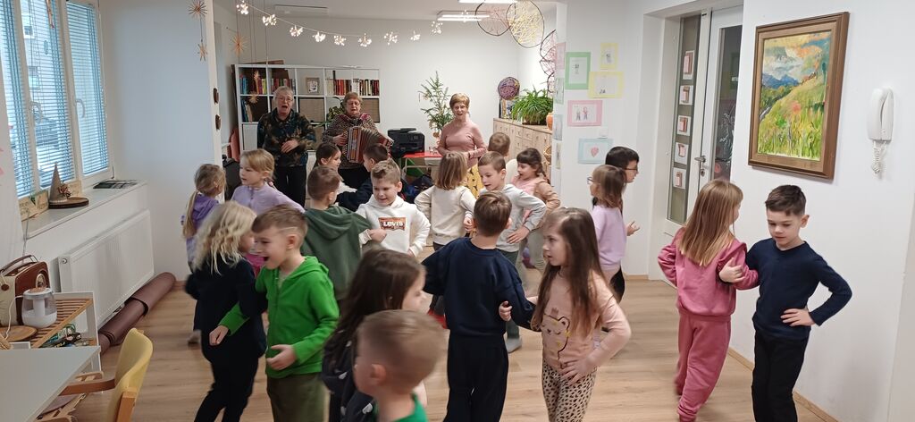 V sredo, 21. januarja 2026, smo se z otroki skupine Sove iz Vrtca Kidričevo udeležili prijetnega druženja v VGC+ Stičišče v Kidričevem, kjer so nas gostoljubno sprejele ljudske pevke Vesele Polanke iz Cirkovc.