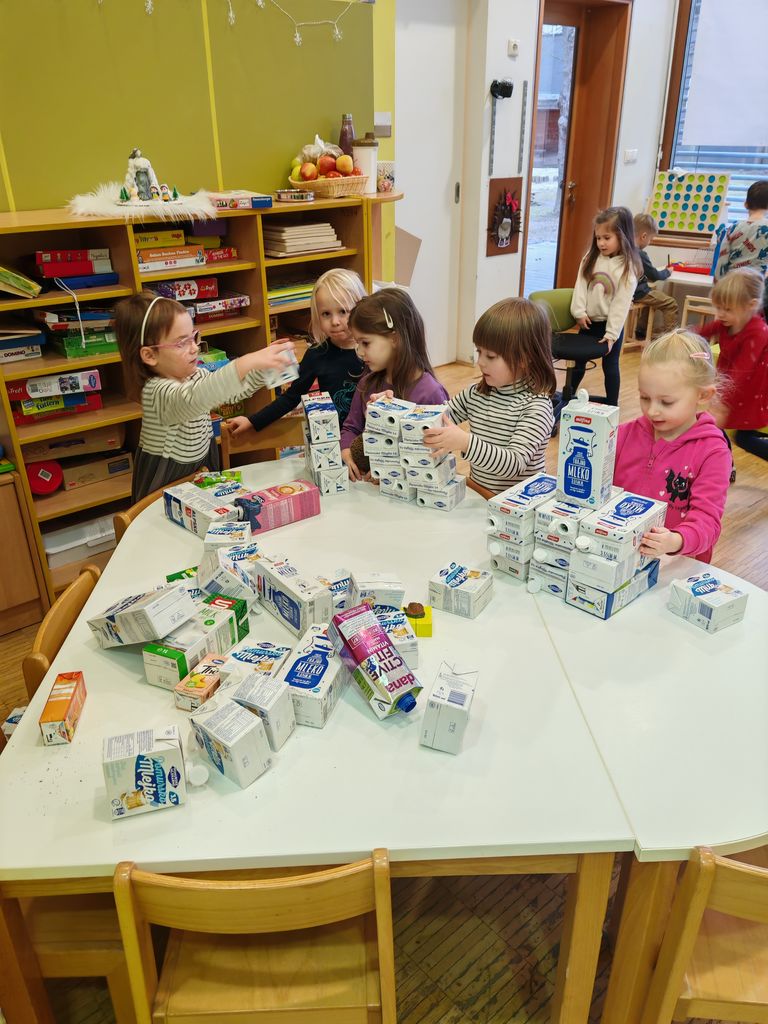 Zbirali smo tako embalažo kot tudi ideje o tem, kaj bi lahko iz nje naredili. To šolsko leto pri nas mineva v znamenju metuljev, zato smo se odločili narediti metulja. Z otroki smo pridno zbirali embalažo, jo čistili in hranili. Ko smo je imeli dovolj, smo pričeli z izdelavo.