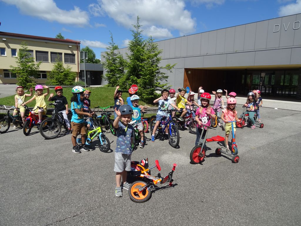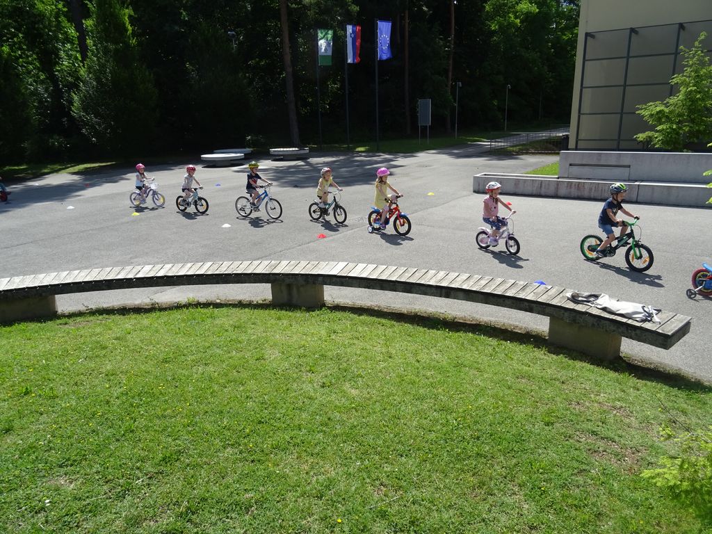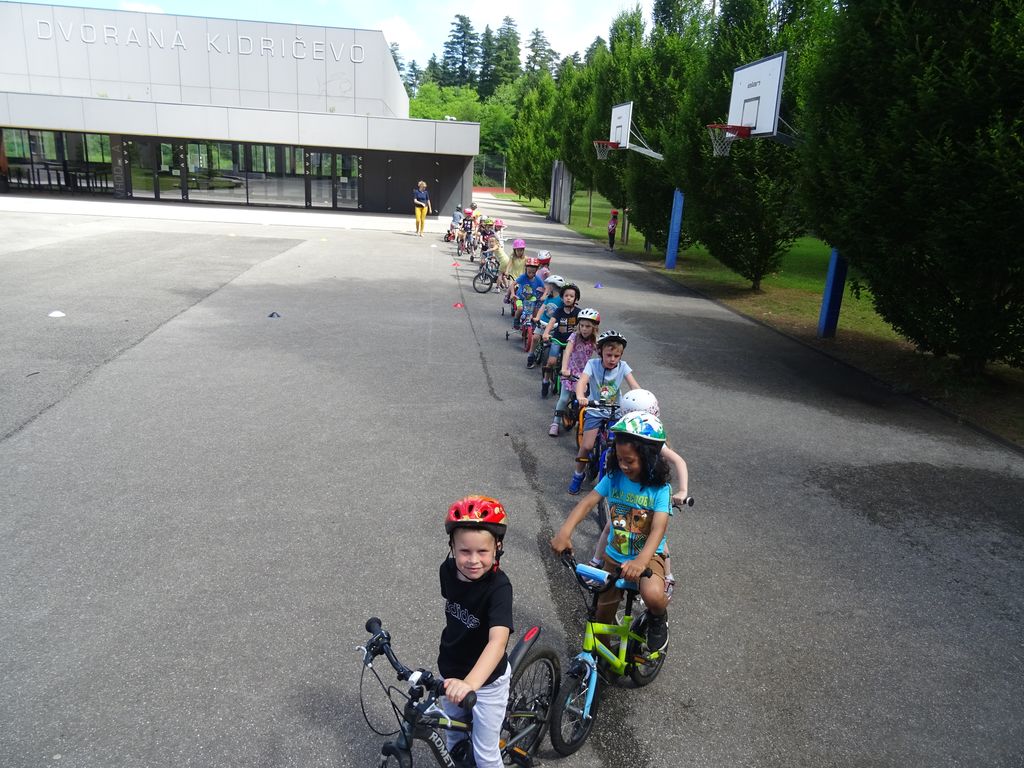 Otroci in vzgojiteljici iz skupine Delfini iz Vrtca Kidričevo smo v ponedeljek, 6. junija 2022, izkoristili lep sončen dan in v okviru projekta Mali sonček izvedli kolesarjenje. Otroci so v vrtec pripeljali svoja kolesa, pozabili pa niso niti na zaščitne čelade. Odpravili smo se pred športno dvorano ob OŠ Kidričevo, kjer smo si s stožci in prometnimi znaki označili kolesarsko pot. Polni veselja in ustrezno opremljeni smo se podali na vožnjo. Otroci so urili svoje kolesarske spretnosti, sledili navodilom in upoštevali pravila varne vožnje. Vsi so uspešno opravili kolesarjenje, dan v vrtcu pa je bil ponovno nepozaben in predvsem zabaven.