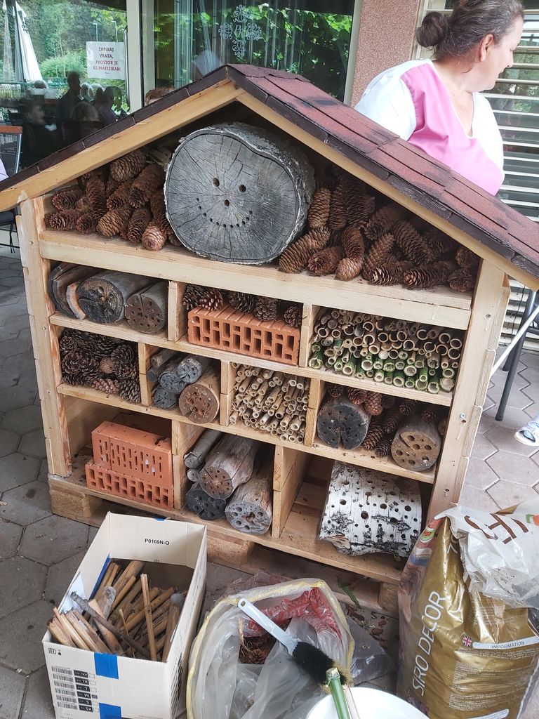 Otroci in starejši skupaj ustvarili panj za žuželke