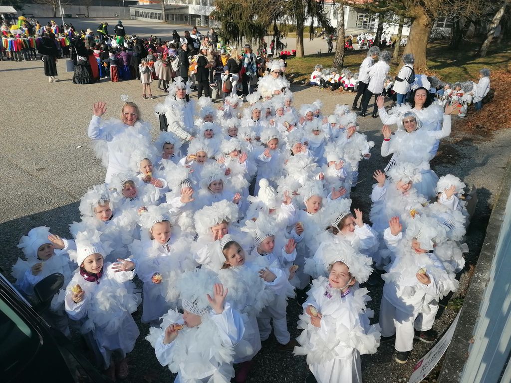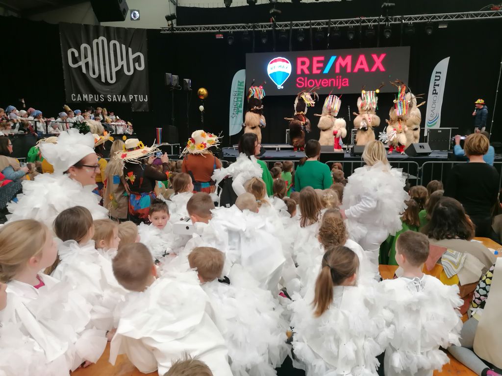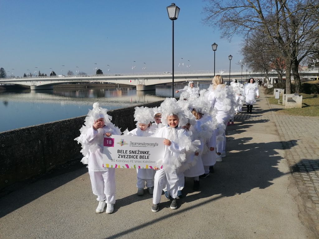 Po nedeljski veliki karnevalski povorki so ptujske ulice v ponedeljek, 20. februarja 2023, zavzeli še najmlajši, vrtčevski otroci drugega starostnega obdobja. Otroške pustne povorke se je udeležilo več kot 1100 otrok iz številnih vrtcev z vseh koncev Slovenije. Del te zgodbe na otroški pustni povorki smo bili tudi otroci in vzgojiteljice iz Vrtca Kidričevo. Otroci drugega starostnega obdobja iz skupin Delfini in Sove so se skupaj z vzgojiteljicami za en dan spremenili v skupinsko pustno masko SNEŽINKE. S ponosom smo se predstavili z masko, ki smo jo sami izdelali.