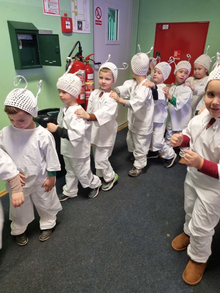 Že pri oblačenju v igralnici se je čutilo pristno pustno vzdušje tako pri otrocih kakor tudi pri vzgojiteljicah. Ponosno in veselo smo vstopili na avtobus, ki nas je odpeljal proti Ptuju na zbirno mesto. Prostor, namenjen zbiranju, se je hitro zapolnil in postal pisan kot metulj. Občudovali smo ostale maske, si izmenjali pozdrave ter se odpravili na sprehod po mestu. Opazovali smo, kako so okrašene ulice, okna in glavni trg. Med potjo so nas pozdravljali znani in neznani obrazi, ki so se z otroki fotografirali in nam zaželeli veseli pust. Sprehod smo nadaljevali do večnamenske dvorane Campus. Tam nas je pričakala okrepčitev s hot dogi in pustnimi krofi ter vodo. Obiskali so nas tudi kurenti, ki so se predstavili, se z otroki pozabavali in jim pokazali, kako se sleče kurentijo. Otroško navdušenje in občudovanje je bilo vidno v njihovih sijočih očkah. Ko so kurenti odišli, so otroci rajali po svoji želji. Otroški ples je bil videti kot pravi ples metuljev. Vzgojiteljice smo bile zelo zadovoljne in ponosne na naše delo pri izdelavi maske, saj smo videle, kako otroci uživajo.