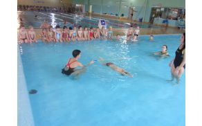 Tako so preko igre in gibalnih vaj na zabaven način spoznavali in usvajali plavalno tehniko s plavalnimi pripomočki ali brez njih.