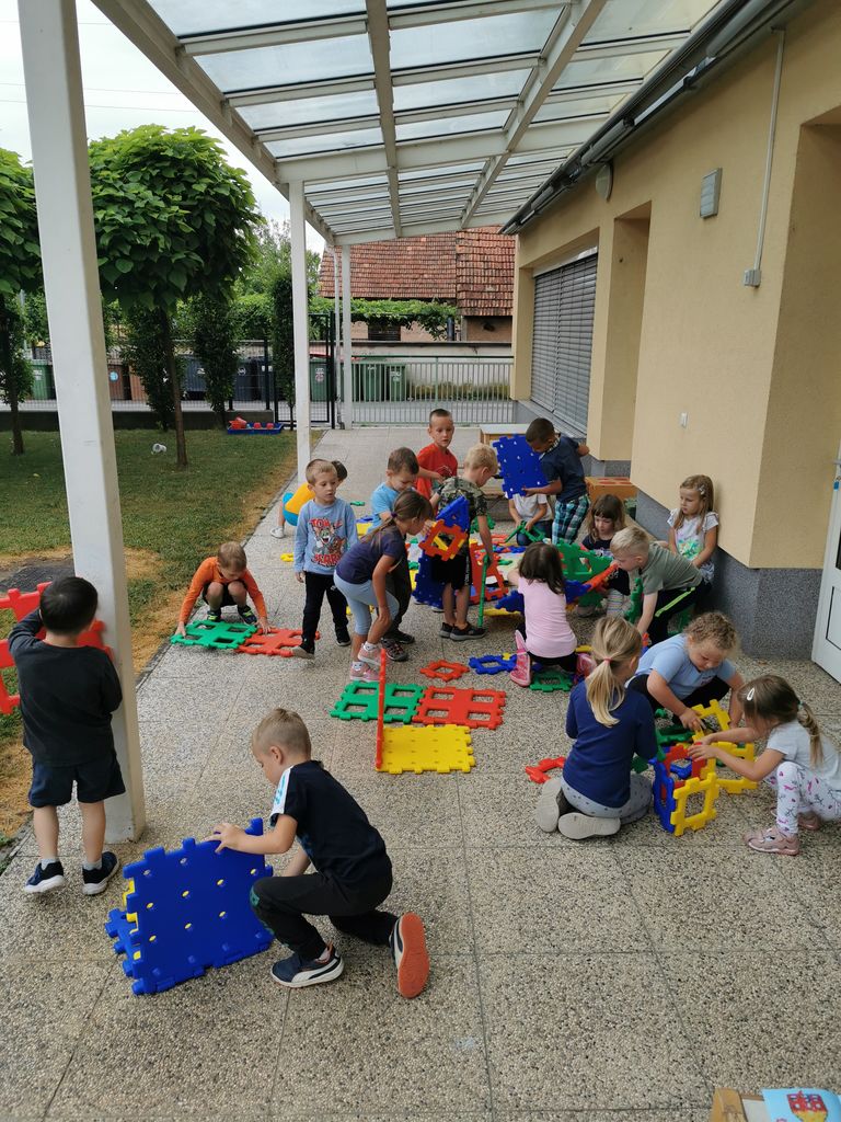 Šolsko leto se je zaključilo in pričele so se počitnice v vrtcu. Ker je vreme lepo in sončno, izvajamo na svežem zraku različne dejavnosti ter se igramo. Veliko se igramo na terasi vrtca ali pa na igrišču. Na terasi se igramo predvsem z lego gradniki, rišemo in ustvarjamo ter se igramo z vodo in mivko, na igrišču pa se igramo v peskovniku in na igralih. Seveda ob tem poskrbimo, da igra otrok poteka v senci in da po 10. uri nismo zunaj, če je prevroče.