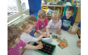 Tudi v vrtcu smo pričeli s spomladanskim sajenjem in sejanjem rastlin. Saditvene posode smo napolnili z zemljo, posejali semena različnih rastlin ter posadili solato, čebulo, zelišča, jagode, kmalu bomo posadili tudi paradižnik in papriko. Posode smo postavili na okensko polico. Sedaj bomo posajeno in posejano pridno zalivali, vsak dan opazovali, kdaj bo kaj pokukalo iz zemlje, opazovali rast rastlin, nato pa čakali na prve pridelke. Otroci se še posebej veselijo jagod. Zelo radi sodelujejo pri tovrstnih dejavnostih in uživajo v svojih prvih poskusih vrtnarjenja, če jih le spodbudimo k temu in jim to omogočimo.