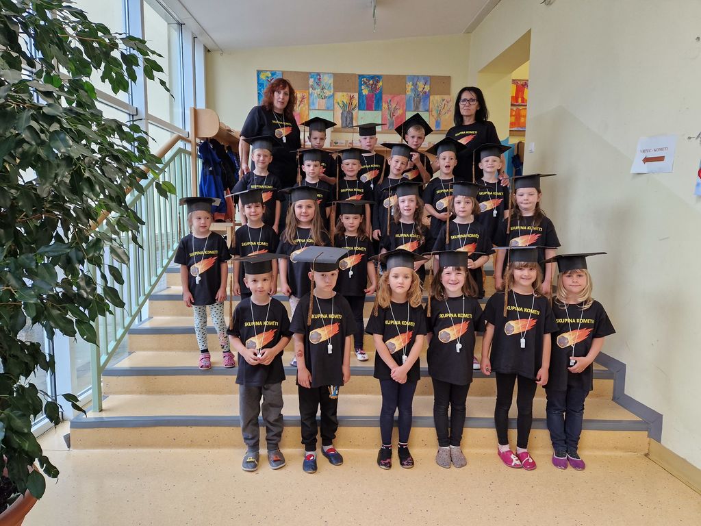V ponedeljek, 5. 6. 2023, smo se kot mini maturanti predstavili z nastopom za otroke iz vseh skupin vrtca ter se z glasnimi žvižgi piščalk od njih tudi poslovili. Zapeli smo nekaj pesmi, ki smo se jih naučili pri pevskem zboru, ter se izkazali v znanju nemščine. Zaradi slabega vremena smo »galamili« in piskali s piščalkami po prostorih šole.