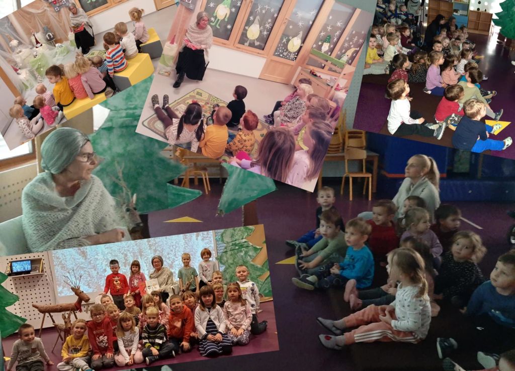 Uvod v ta čarobni čas pa nam je pričarala babica Zima, ki nas je obiskala že na začetku meseca decembra, v času prihoda Miklavža. Otroke je pričakala v prijetnem in lepo okrašenem prostoru naše telovadnice. Pozdravila in nagradila jih je z zgodbicami iz slikanic s praznično vsebino. Vsaki skupini je prebrala ali pripovedovala zgodbico, primerno starosti otrok. Obiskala je tudi otroke naše nove podružnice v Lovrencu.