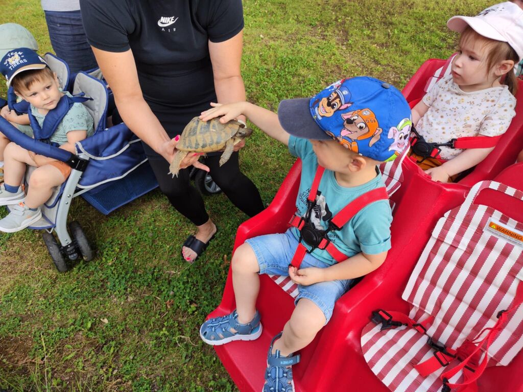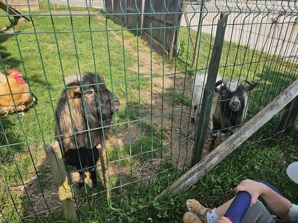 Najprej smo obiskali poseben »živalski vrt«, ki se nahaja čisto blizu vrtca, kjer skrbni krajani v Kidričevem gojijo želvice, nato pa smo se odpravili še naprej do vrtov v Kidričevem, kjer krajan skrbi za koze, petelina in celo račko.