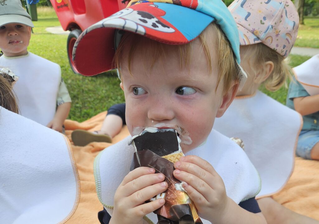Pot smo nadaljevali proti Parku mladosti, kjer smo se igrali, plezali, tekali in peli. Ker je bil dan topel, smo se okrepčali z vodo in, kot se za tak izlet spodobi, tudi s sladoledom. Sladke kapljice so se topile na otroških ličkih, medtem ko so polni vtisov pripovedovali o vsem, kar so videli.
