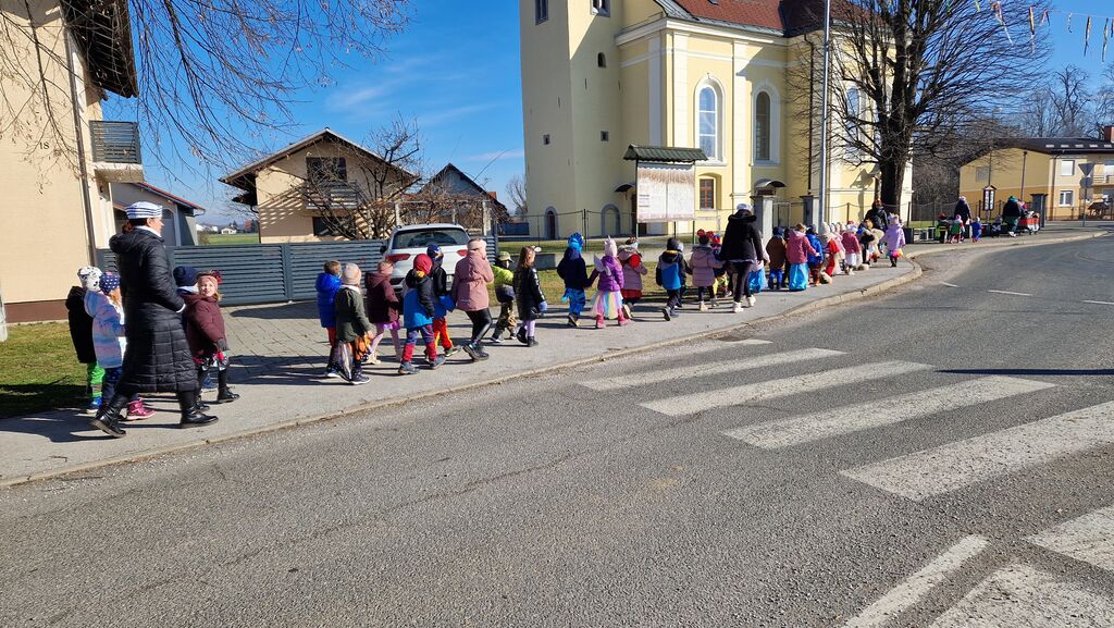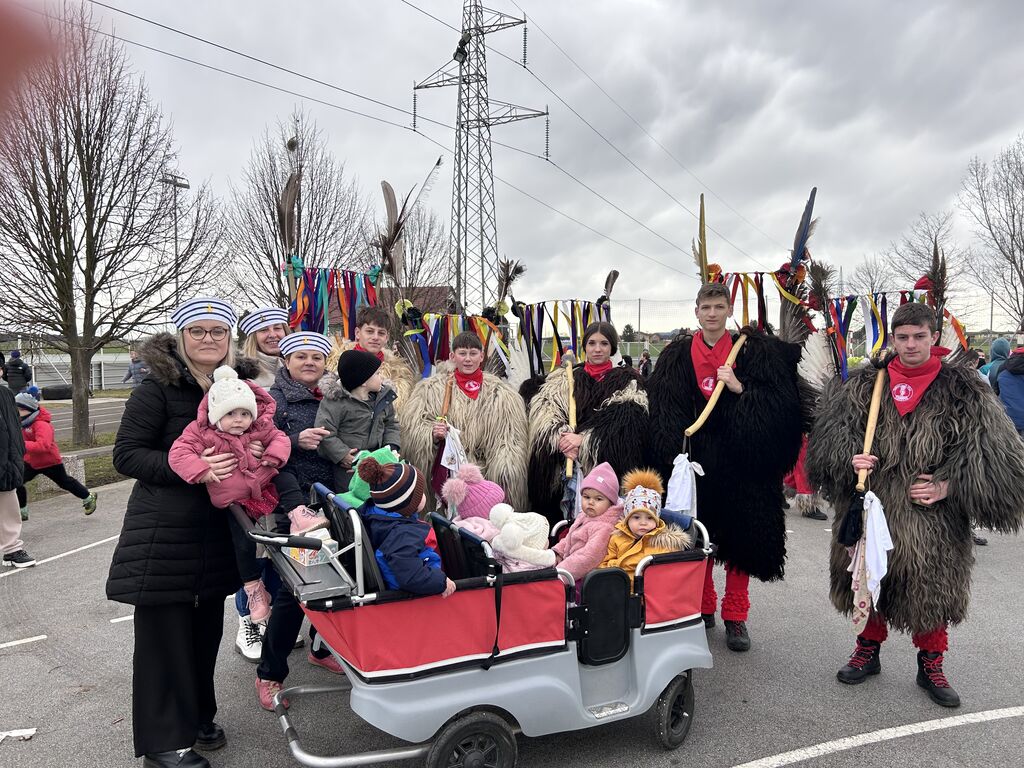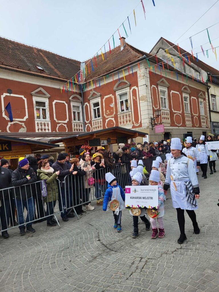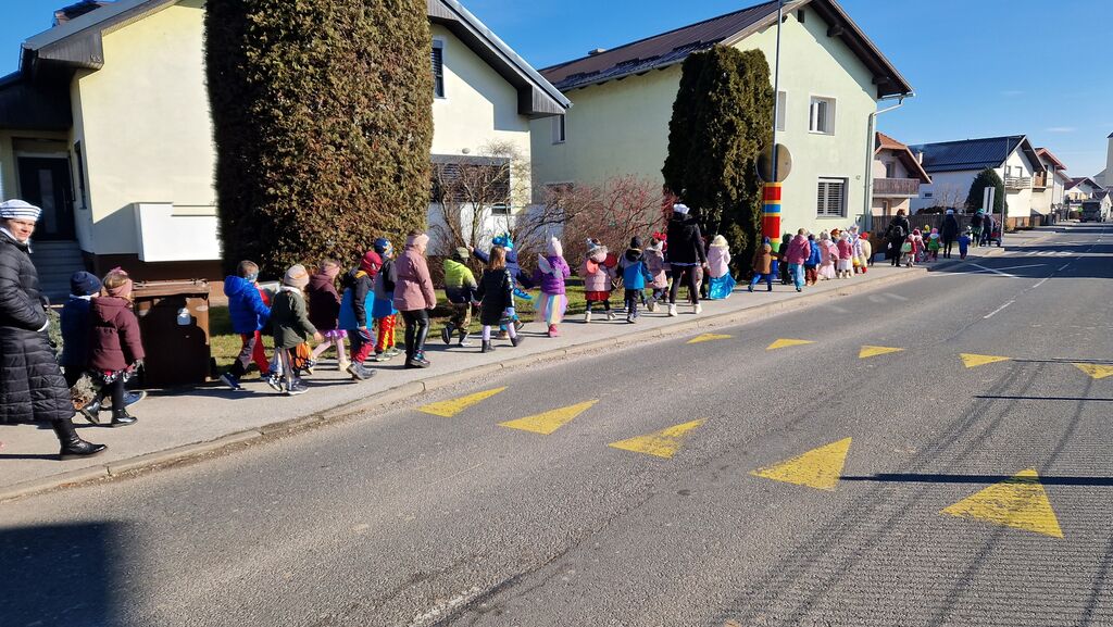 V ponedeljek smo se odpravili na otroško pustno povorko na Ptuj, kjer smo se predstavili z našo skupinsko masko Kuharji. Kuhalnice, posode in predpasniki so privabljali nasmehe gledalcev, otroci pa so ponosno korakali v povorki.