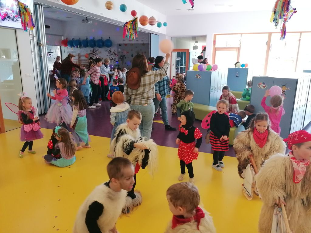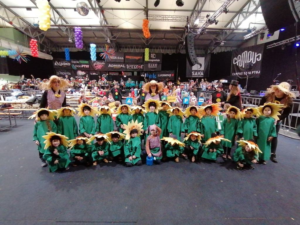 V ponedeljek, 12. 2. 2024, smo se s predšolskimi otroki skupin Delfini in Sove odpravili na karnevalsko rajanje v dvorano Campus na Ptuju. Predstavili smo se kot skupinska maska sončnice in vrtnarji ter dobili pohvale za našo masko. Zaradi napovedanega slabega vremena je bila povorka po mestnih ulicah žal odpovedana. Otroci so bili kljub temu navdušeni nad dogodkom in rajanjem. Obiskali so nas kurenti in pozdravila nas je županja mesta Ptuj, gospa Nuška Gajšek. Po pogostitvi smo se v vrtec vrnili polni doživetij ter bogatejši za nove izkušnje.