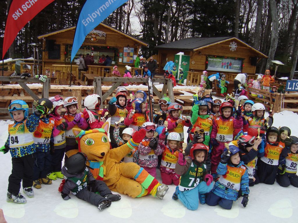 Vrhunec tečaja pa je bil prihod maskote LISIČKE, ki je otroke pričakala na cilju in jih razveselila s POKALI, v katerih je bila vstopnica za adrenalinsko vožnjo s sanmi po Mariborskem Pohorju, kar jih je zelo razveselilo.