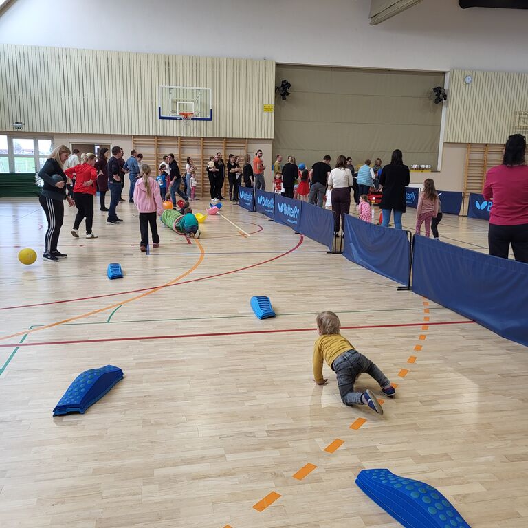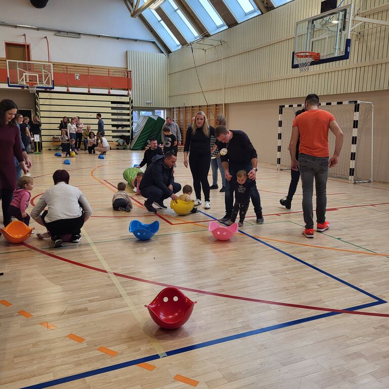 Za starše in otroke smo pripravile štiri različne postaje, ki so bile del zabavnega poligona. Udeleženci so se lahko preizkusili v različnih gibalnih nalogah, kjer so pokazali spretnost ter ravnotežje. Vsaka postaja je prinesla nov izziv, hkrati pa veliko smeha in sproščenega druženja.
