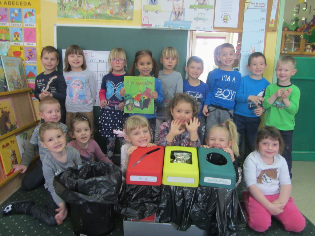 Naučili smo se, da odpadkov ne mečemo v naravo, marveč jih ločujemo in zbiramo v za to pripravljenih zabojnikih ter s tem tudi mi prispevamo k čistejšemu okolju.