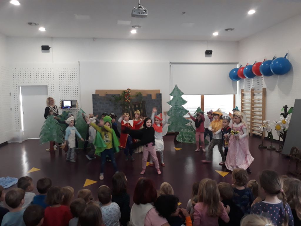 Najprej smo se v naši igralnici predstavili prvošolčkom, katerim je bila naša plesna dramatizacija zelo všeč. Čez nekaj dni smo predstavo odigrali v telovadnici vrtca, kjer so bile našega nastopa deležne upokojenke Vrtca Kidričevo, pedagoška vodja in ravnateljica. Prejeli smo ogromen aplavz in številne pohvale. Prav tako so nas z veseljem prišli pogledat otroci iz 2. starostnega obdobja s svojimi vzgojiteljicami in tudi njim je bila naša predstava zelo všeč. V zahvalo za naš trud in voljo, da smo jim polepšali praznične dni, smo dobili velik aplavz, čestitke in majhno pozornost.