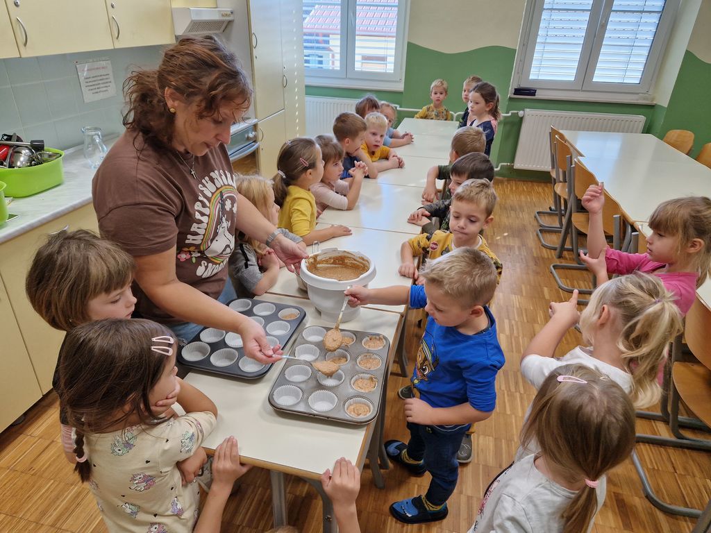 Otroci so se v torek, 4. 10. 2022, preobrazili v kuharske mojstre in se preizkusili v kuharskih delavnicah. V najmlajši skupini Lunice so otroci skupaj z vzgojiteljicama naredili sadno-mlečni smuti. V skupini Zvezdice so pripravili čokoladne kroglice, v skupini Sončki so izdelali ježke, v skupini Mavrice so se otroci urili v izdelovanju Raffaello kroglic in hruškovih ježkov s čokoladnim pudingom, otroci iz najstarejše skupine Kometi pa so se preizkusili v peki slastnih bananinih mafinov in v izdelavi sadnega smutija. Navdušenja nad sodelovanjem pri pripravi jedi otroci niso skrivali in tako smo morale vzgojiteljice uporabiti kar nekaj organizacijskih spretnosti, da je bilo vsem zadoščeno. Nestrpno so čakali, da so bile jedi pripravljene in so jih z užitkom poskusili.