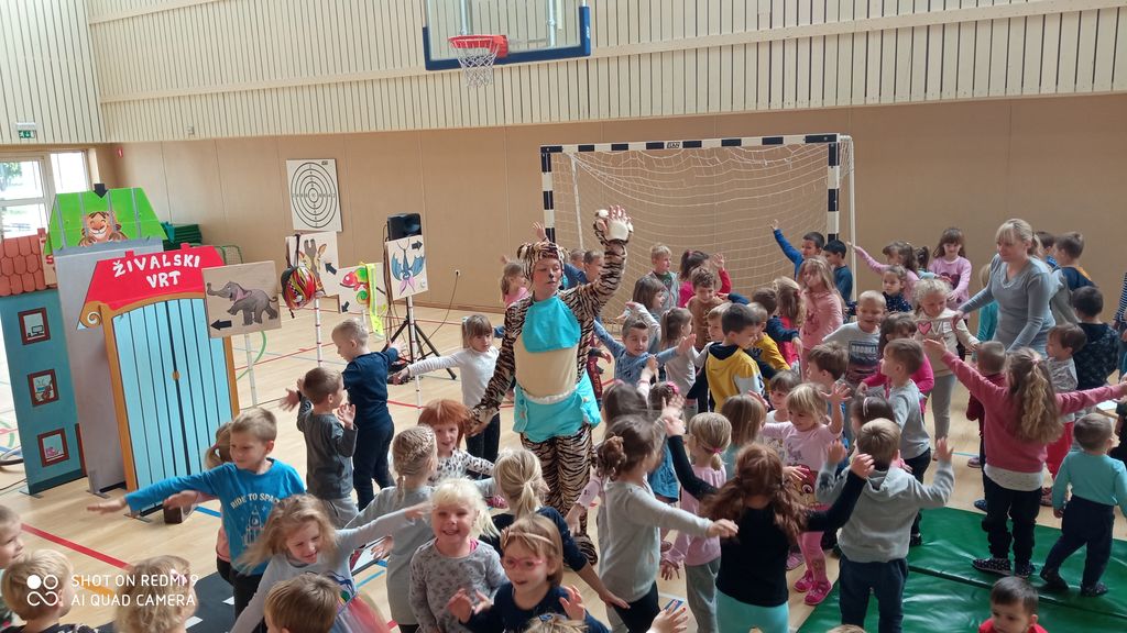 V ponedeljek, 3. 10. 2022, smo v goste povabili gledališče Ku-kuc, ki nam je v veliki telovadnici šole postreglo s predstavo Črtek v mestu. To je iskriva zgodba o mladem tigru, ki ga otroška zvedavost popelje iz živalskega vrta v mesto, majhne in velike pa ozavešča o aktualnih vrednotah trajnostne mobilnosti, ki jih preplete z varnostjo v cestnem prometu.
