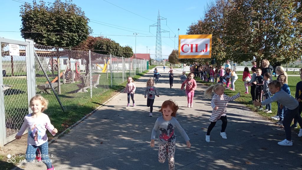 V sredo, 5. 10. 2022, smo v vrtcu priredili jesenski kros. Otroci so se seznanili s pomenom redne športne vadbe za zdravje ter se skupaj z vzgojiteljicami najprej dobro ogreli in nato tekli na igrišču po zastavljeni progi od starta do cilja. Ob koncu teka so slavili zmago in v čast prejeli medalje v obliki jesenskih listov. Sledilo je skupinsko fotografiranje in sproščena igra na otroškem igrišču.