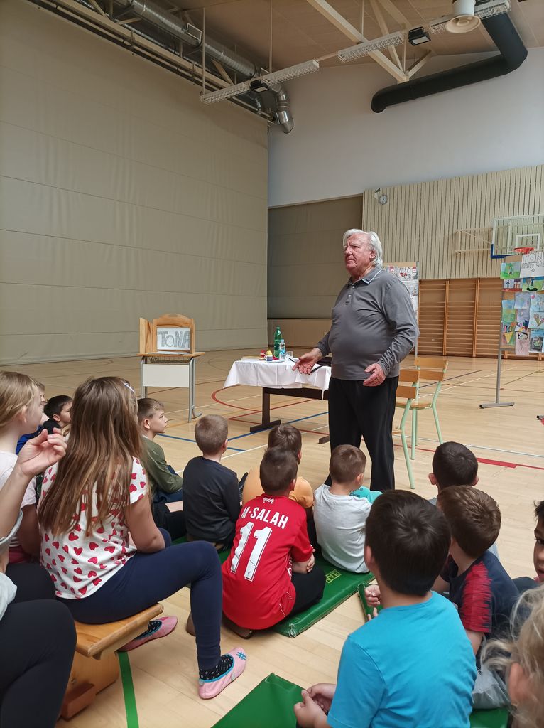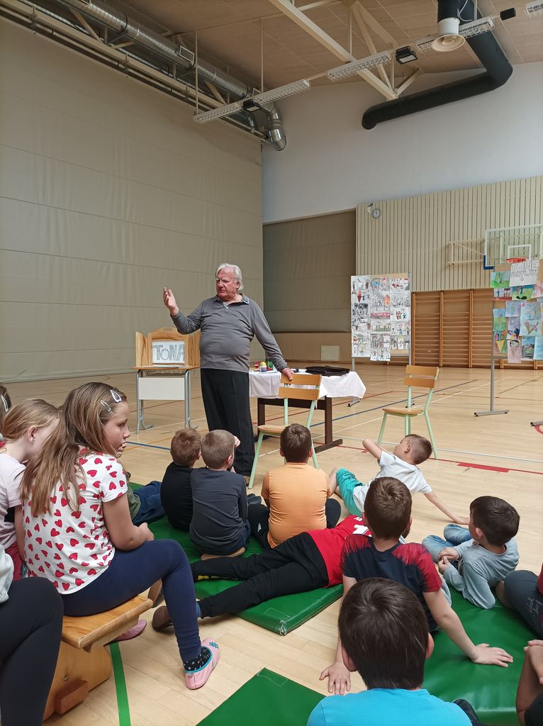 Zaključili smo še eno bralno leto. Učenci in učenke so prebirali različno otroško in mladinsko literaturo, ki je v naši knjižnici ne manjka. Sodelovali pa smo tudi v projektu Medgeneracijsko branje, kjer so dobili v dar knjigo. Letos je bila to Partljič.doc in spodobilo se je, da smo gospoda Toneta Partljiča povabili tudi na šolo. Z veseljem se je odzval vabilu in preživeli smo prijetno dopoldne ob zgodbah njegovega otroštva. Vseh se nas je dotaknila njegova srčnost, neposrednost, življenjska energija in šaljive izjave, ob katerih smo se pošteno nasmejali.