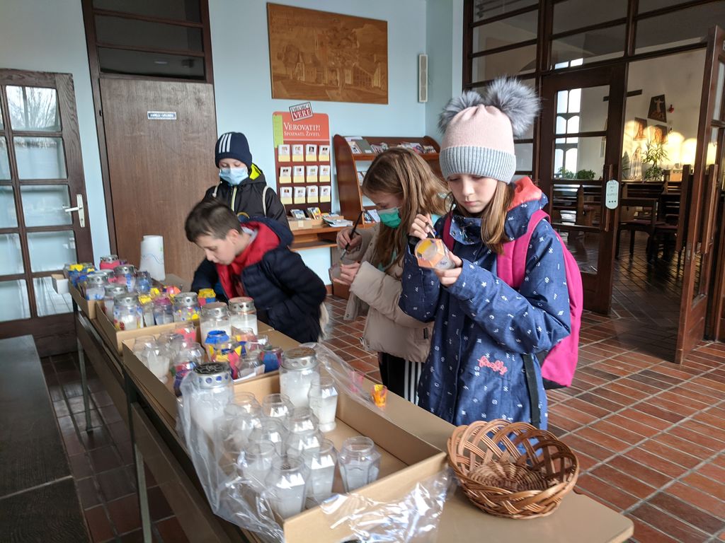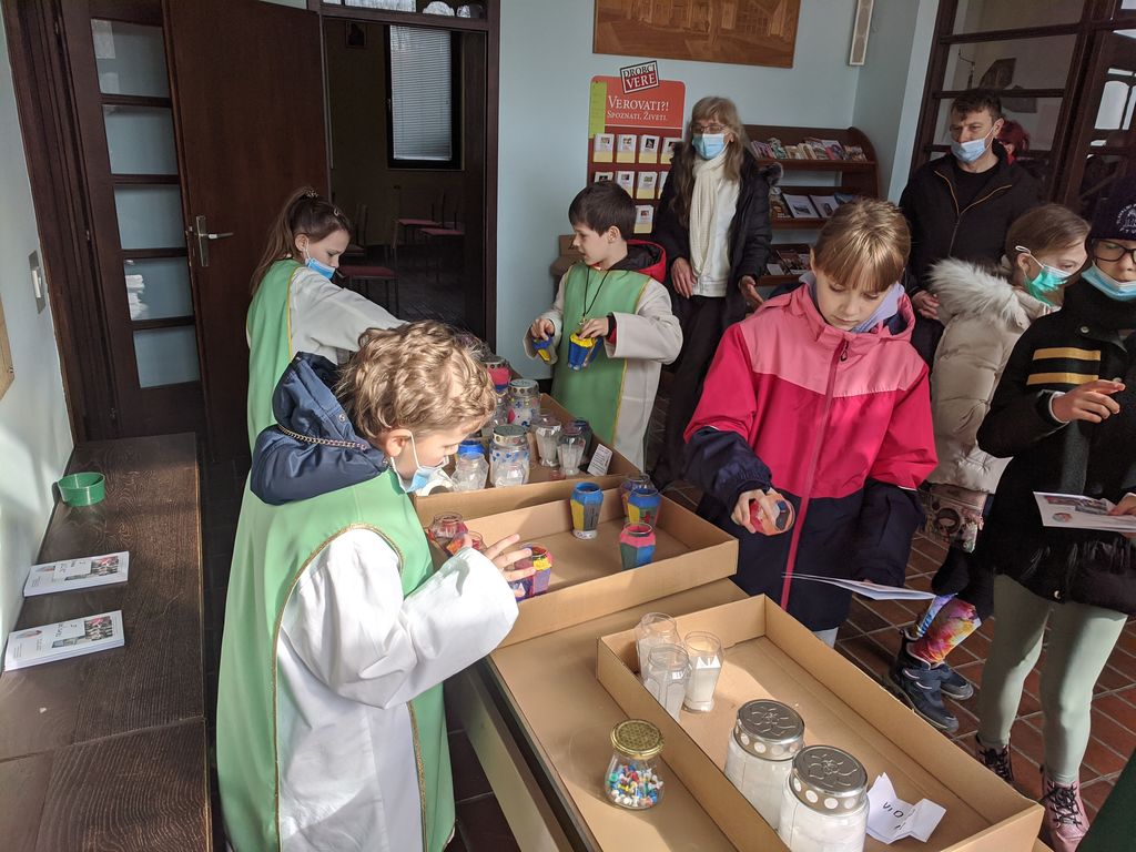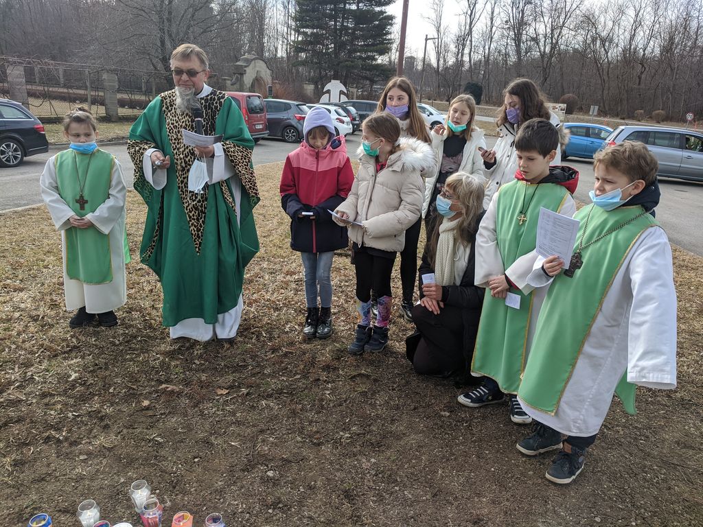 Cel januar so otroci po maši in po verouku barvali svoje sveče, ki so jih v nedeljo po svečnici prižgali pred Marijinim kipom z molitvijo: »Marija, to svečo sem pobarval in prinesel k tebi zato, da boš pri Bogu prosila zame, za mojo mamo in atija, staro mamo in dedija in za ... Naj zgori tebi v čast, ti pa nam izprosi zdravje in da bi se imeli radi.«