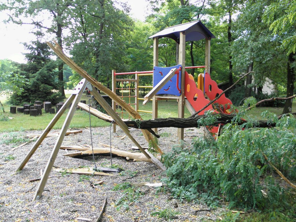 Akacija je stala blizu igral, deli akacije pa so bili razmetani 50 metrov naokrog.