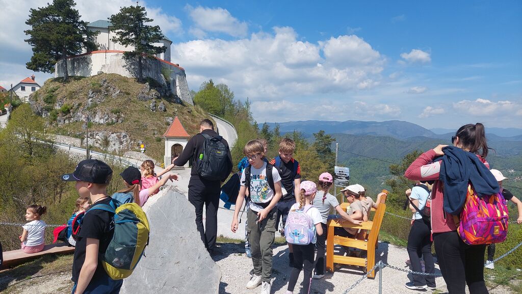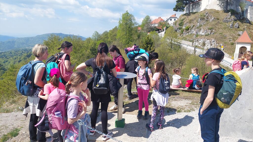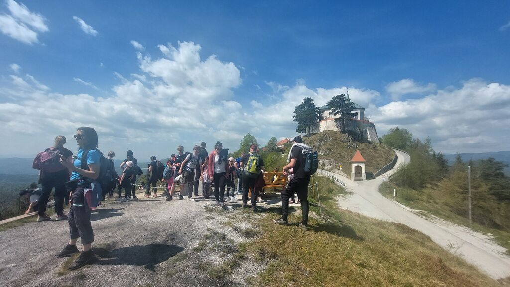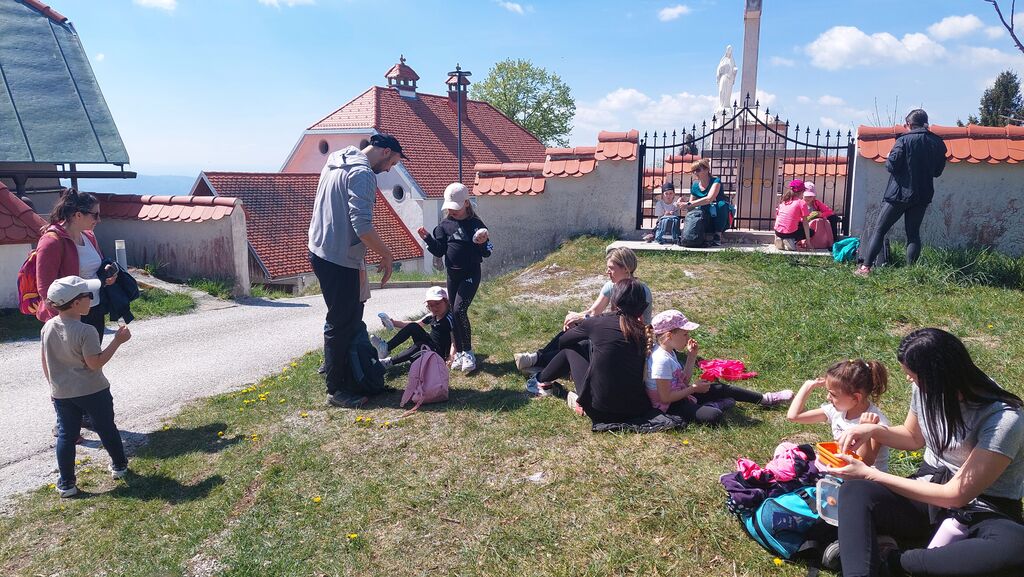 Po dobrih dveh urah hoje smo prispeli na naš cilj – Zasavsko Sveto goro, kjer smo si privoščili zaslužen počitek, se okrepčali in uživali v lepih razgledih na okoliško pokrajino. Po krajšem oddihu smo se odpravili naprej po nekoliko strmejši, a kratki poti proti avtobusu.