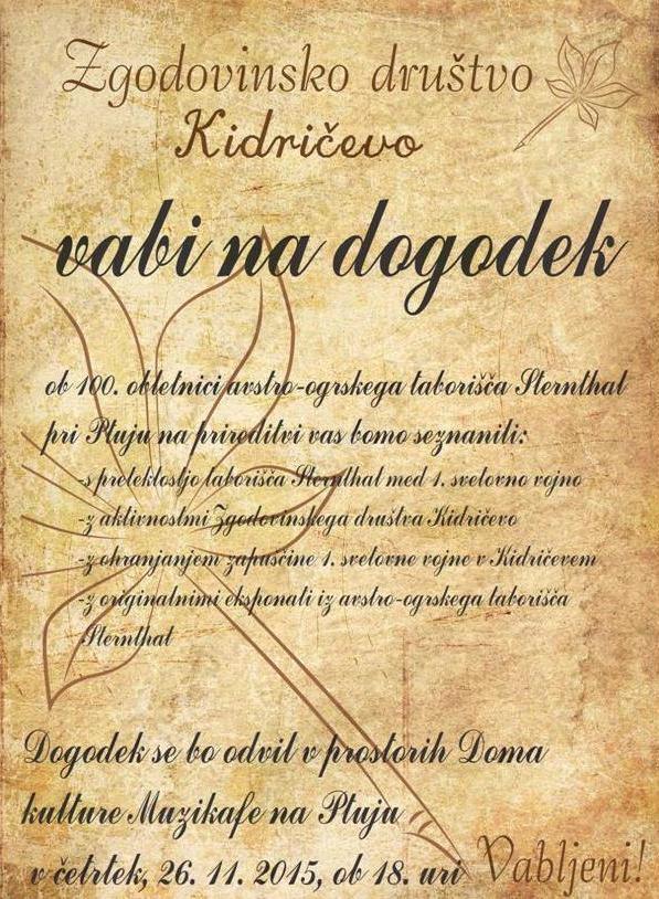 Zgodovinsko društvo Kidričevo vabi na dogodek ob 100. obletnici avstro-ogrskega taborišča Sternthal pri Ptuju.