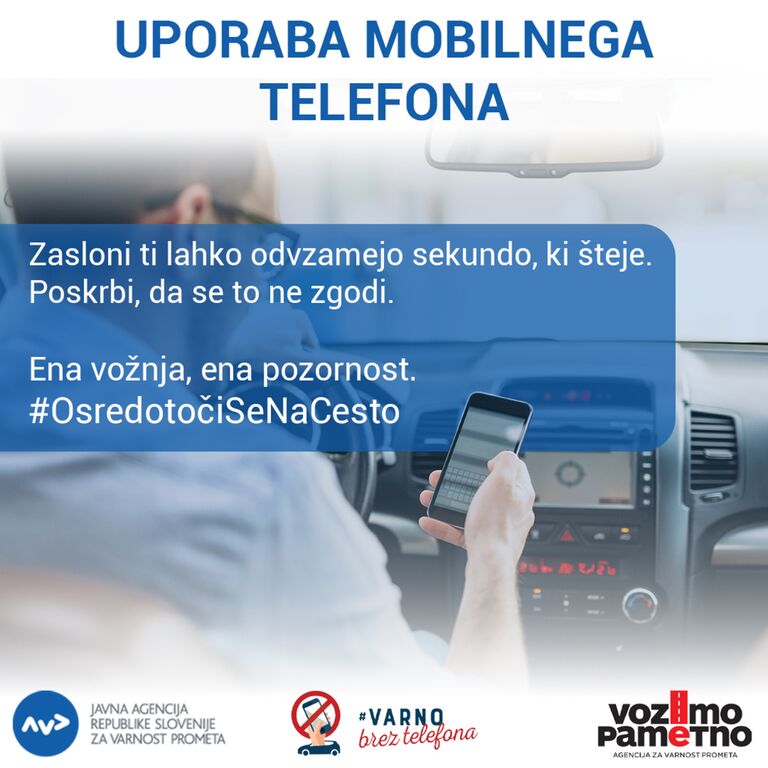 Med 12. in 18. januarjem poteka nacionalna preventivna akcija »Osredotoči se na cesto«. Že trenutek nepozornosti za volanom lahko spremeni življenje za vedno. Ste pripravljeni odložiti telefon in se zares posvetiti vožnji?
