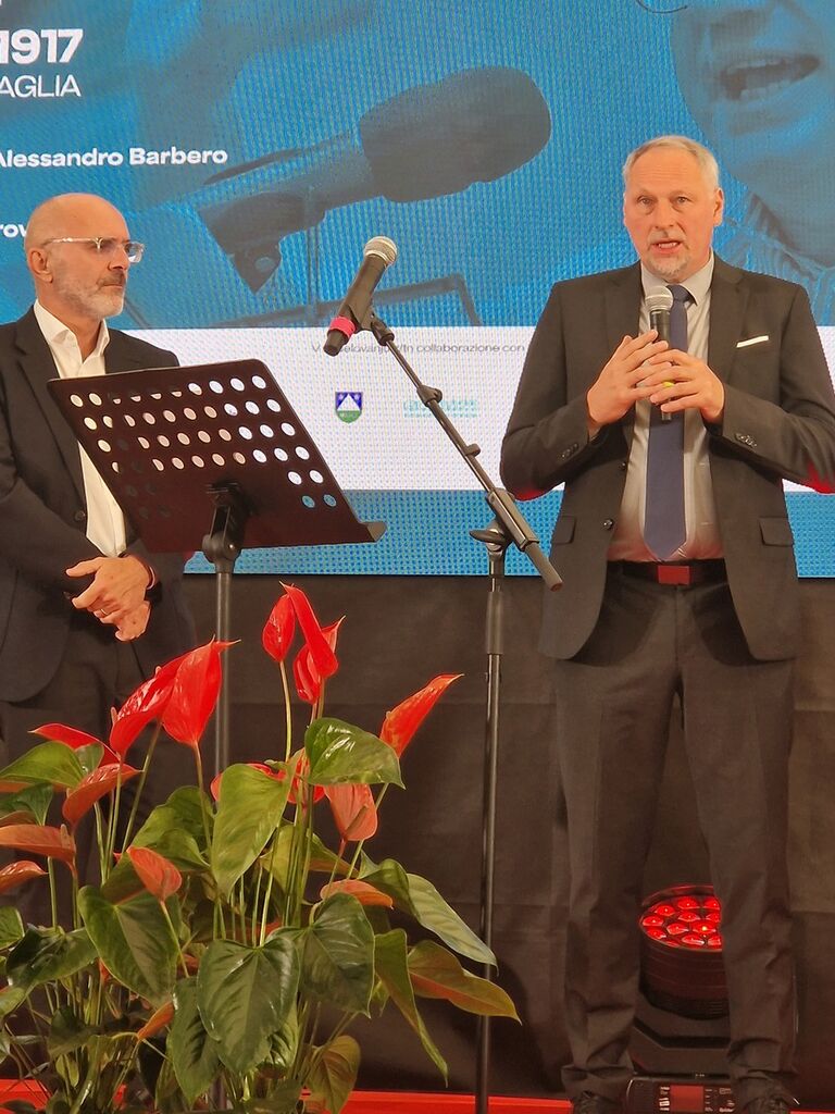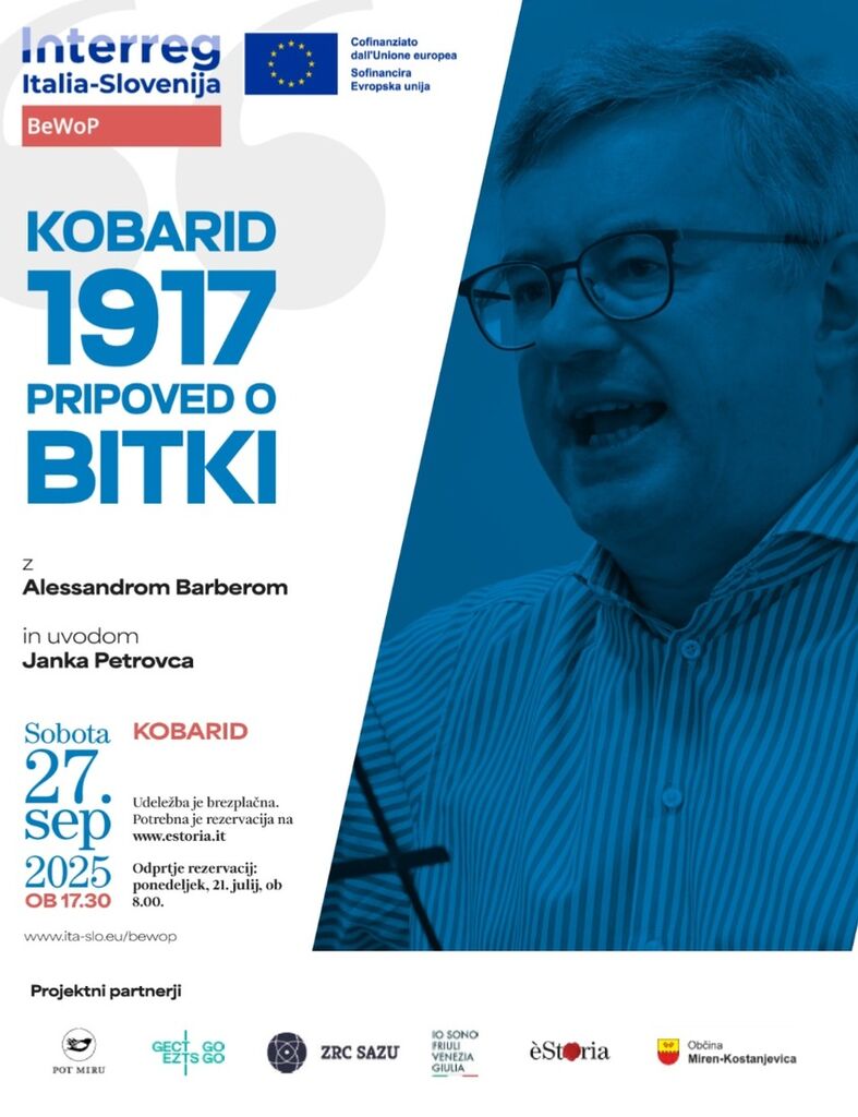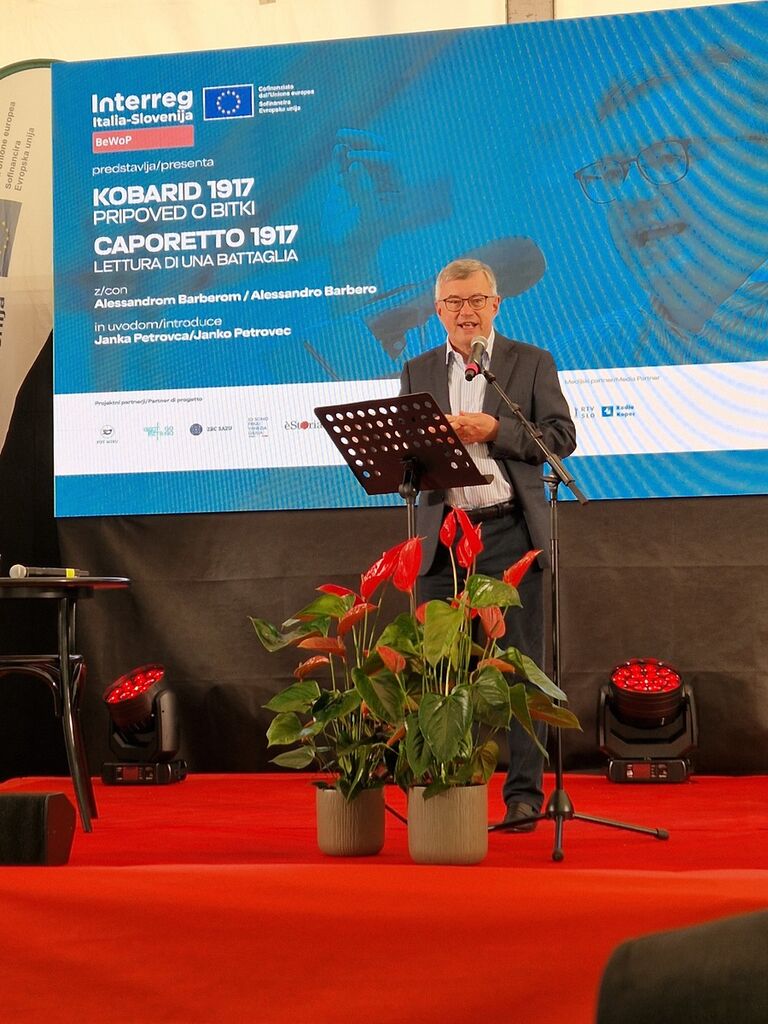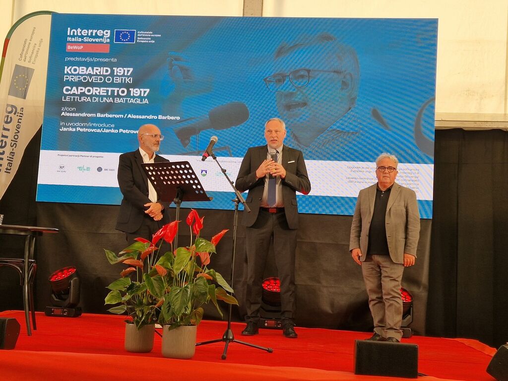 Priznani italijanski zgodovinar prof. Alessandro Barbero je v soboto, 27. septembra 2025 v Kobaridu obudil spomin na italijanski poraz pri Kobaridu leta 1917 – dogodek, ki nas povezuje v skupnem spominu in nas opominja na preteklost ter poudarja pomen Poti miru od Alp do Jadrana. Alessandro Barbero je znameniti italijanski zgodovinar za srednjeveško in sodobno zgodovino, ki mu sledijo tudi mlajše generacije, ker je njegova zgodovinska pripoved jasna in argumentirana.