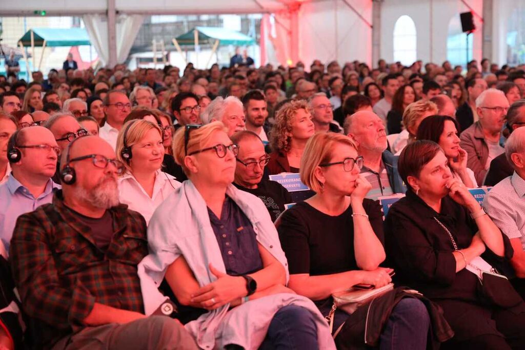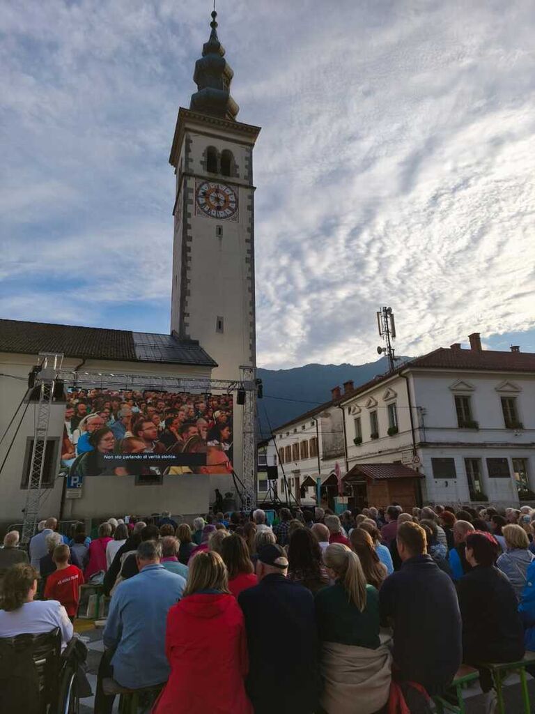 Zaradi velikega zanimanja za dogodek, je bil šotor premajhen za vse, ki so želeli slišati osrednjega govorca gospoda Barbero, zato je bilo prizorišče razširjeno tudi v center Kobarida – na Trg svobode, kjer si je prenos na velikem zaslonu v živo ogledalo dodatnih več sto ljudi.