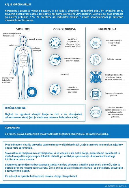 Glede odpovedi množičnih dogodkov so ministri za zdravje na srečanju v Rimu sklenili, da se mora odločati od primera do primera. Javne prireditve v osnovi predstavljajo tveganje za prenos okužb. Zato vsem obolelim, starejšim osebam, kroničnim bolnikom, ki so dovzetni za nalezljive bolezni, v tem trenutku odsvetujemo obiskovanje množičnih prireditev. Organizatorje še posebej pozivamo, da morajo na prireditvah zagotoviti ustrezne higienske razmere – od mila do prezračevanja prostorov. Splošno odpovedovanje dogodkov v trenutni epidemiološki situaciji ni potrebno.
