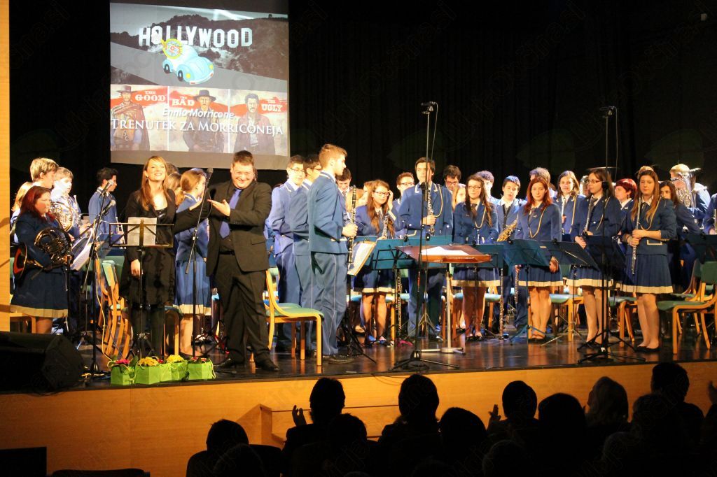 Koncert so mladi glasbeniki začeli  s skladbo Bojana Adamiča Partizanska eskadrilja, udarno koračnico iz leta 1979. V nadaljevanju so občinstvo popeljali v svet dinozavrov, v Jurski park in nazaj v pravljični svet škratov, vilincev, čarovnikov, orkov in malih hobitov, h Gospodarjem prstanov ter na Titanik, največjo ladjo na svetu. Odigrali so nam skladbe iz sveta Disneyjevih junakov, Tarzana in Polarnega vlaka.