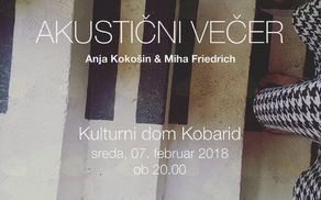 Mesec kulture 2018 v Kobaridu bomo odprli na predvečer slovenskega kulturnega praznika, 7. februarja. Akustični dvojec, Anja Kokošin & Miha Friedrich, bo na odru kobariškega Kulturnega doma prepletel glasove, kitare, tolkal in tistih poznanih spevov, ki so nas ganili že zdavnaj in za vedno ostajajo zelo osebni in vsakomur njegovi.