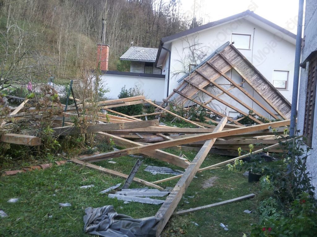 Močan sunek vetra je poškodoval občanko na Drežniškem, ki je bila odpeljana v bolnišnico. K sreči drugih poškodovanih ni bilo, gmotna škoda tako na zasebni kot javni infrastrukturi pa je precejšnja.