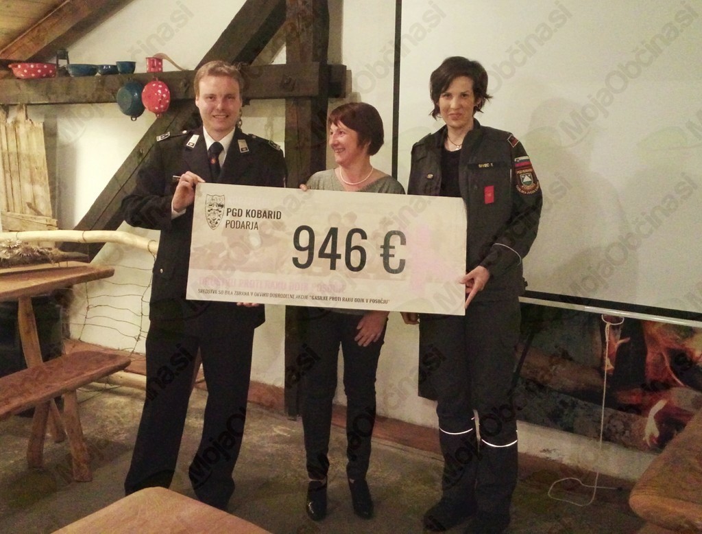 Predsednik PGD Kobarid, Borut Volk in gonilna sila dobrodelne akcije, Tina Sivec, sta tako na njihovem občnem zboru slovesno predala simbolični ček v višini 946 EUR predsednici društva, Dorici Batistuta. Poleg zbranih sredstev je svoj del primaknila tudi KS Kobarid ter PGD Kobarid.
