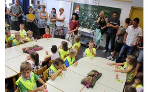 Prvošolčke je pozdravila tudi direktorica Mlekarne Planika Anka Miklavič Lipušček in prvošolčkom podarila sir, ki so ga v Mlekarni Planika izdelali posebej zanje.