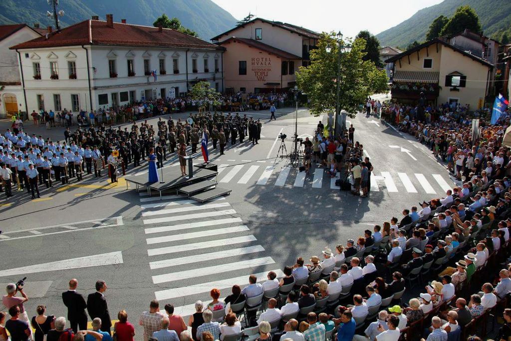 V soboto, 8. julija zvečer, je na kobariškem trgu potekal promenadni koncert Orkestra oboroženih sil Republike Hrvaške, kateremu je sledila projekcija dokumentarnega filma Preboj pri Kobaridu,