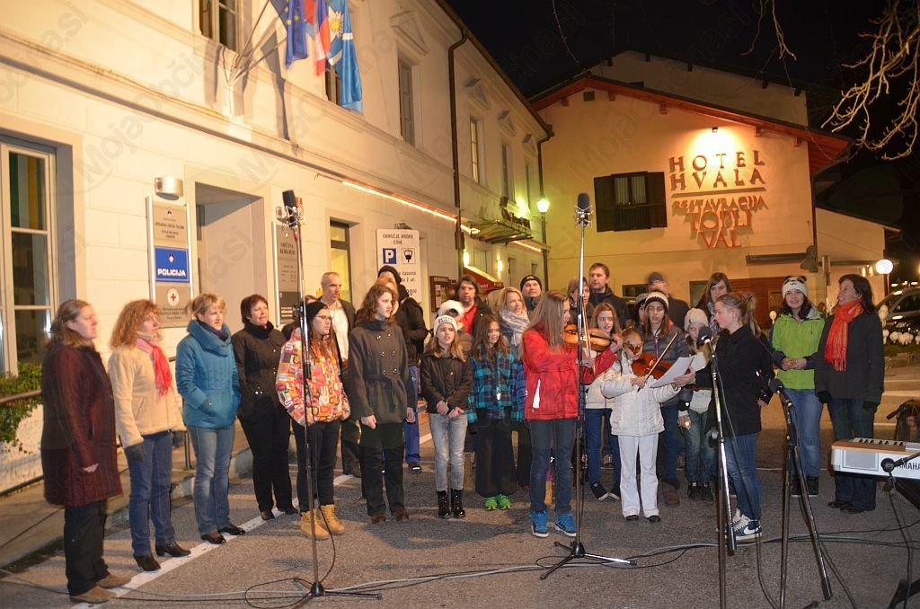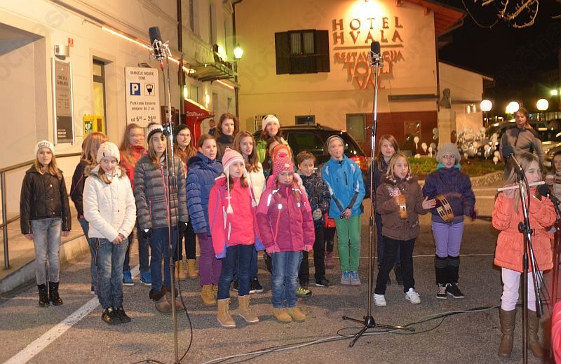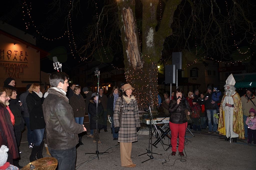Na trgu sta zbrane pozdravila županja Občine Kobarid Darja Hauptman in sv.Miklavž ter skupaj prižgala novoletne luči in tako otvorila praznični december.