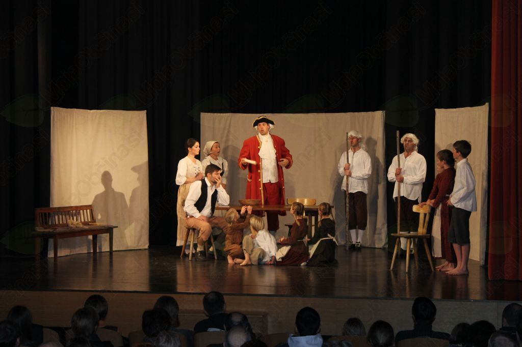 Na odru se je skozi sedem slik, prepletenih s petjem tolminskih pesmi po izboru Mateja Kavčiča, plesom in godci zvrstilo kar 30 igralcev in pevcev od šest pa tja do šestdeset let. Tri drežniške generacije bi lahko rekli. Gledalci pravijo, da jih je žalostna zgodba mladega dekleta, ki je moralo odslužiti očetov dolg na gradu najprej ganila in orosila oko, rešitev grofovih težav z ušmi pa nasmejala in razveselila s srečnim koncem.