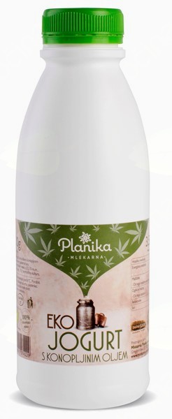 Eko jogurt s konopljinim oljem spada v linijo ekoloških izdelkov Mlekarne Planika in je prvi tovrstni izdelek na slovenskem tržišču. Gosto tekoč jogurt ima svež rahlo kisel okus, s konoplji značilno noto po oreških.